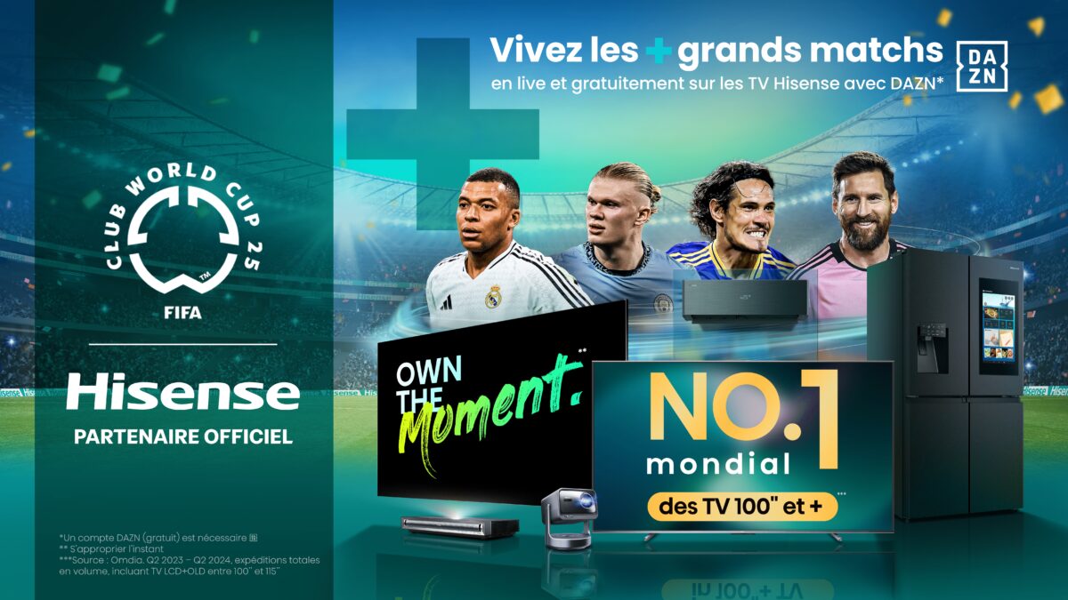 Paris, le 19 mai 2025 – Hisense, marque de référence dans l’électronique grand public et l’électroménager, dévoile sa nouvelle campagne « Own the Moment », qui met en lumière la puissance des expériences partagées. À l’approche de la très attendue Coupe du Monde des Clubs de la FIFA 2025™, la marque célèbre les moments d’émotion collective que seul le sport peut offrir. Partenaire officiel de la compétition, Hisense renforce à travers cette campagne son engagement en faveur de l’innovation technologique.