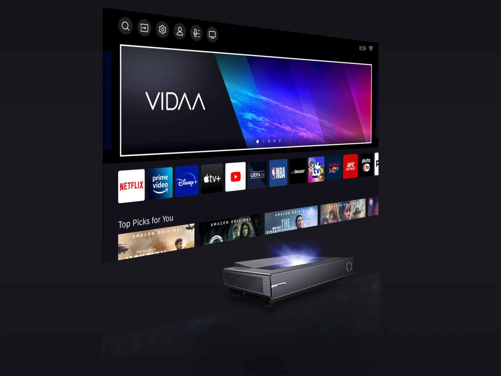 Heureusement pour vous, la nouvelle game de projecteurs Laser Hisense "Laser Cinema" est bien plus qu'un simple projecteur. Il fonctionne avec le dernier système d'exploitation intelligent VIDAA, qui met à votre disposition un hub de contenu convivial en permanence. De Netflix à Disney+, en passant par YouTube, Prime Video et bien d'autres, les meilleurs contenus du monde entier sont accessibles en un simple clic.