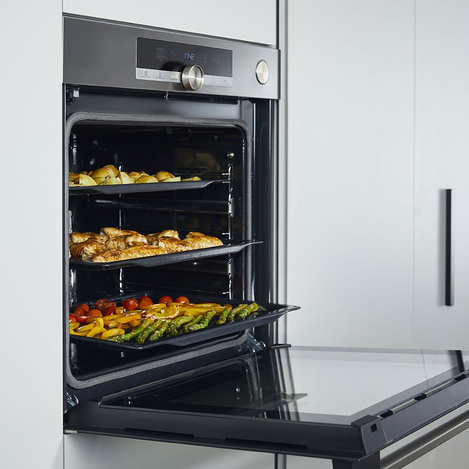 un simple toucher suffit pour ouvrir et fermer la porte du four tout en douceur. Finis les claquements de porte !