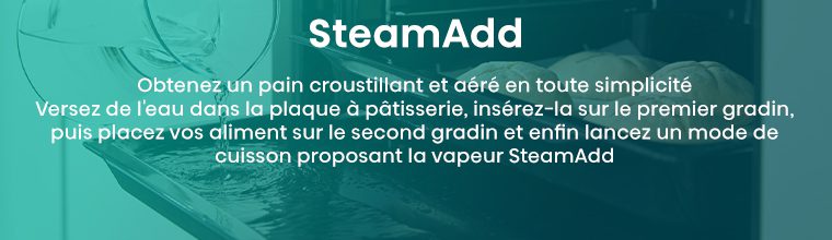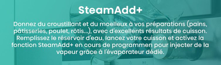 Obtenez des résultats de cuisson plus croustillants et plus aérés avec STEAM ADD PLUS.