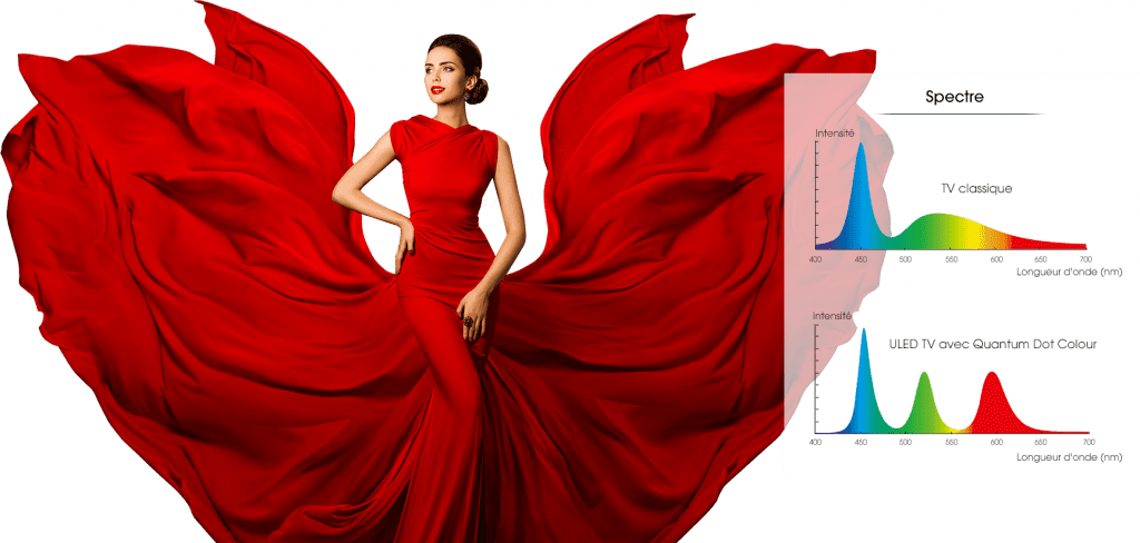La technologie QLED d'Hisense est capable d'afficher avec précision les trois couleurs primaires - en particulier le rouge et le vert - de façon bien plus pur que les TV LED conventionnelles. Couvrant ainsi l'intégralité des couleurs du cinéma (100% de la norme colorimétrique DCI-P3), les écrans Quantum Dot offrent un rouge parfaitement rouge, pour que chaque détail de la robe de la danseuse soit révélé avec fidélité.