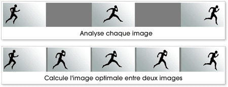 La technologie MEMC (compensation de mouvement) est adaptée pour analyser et estimer la courbe de mouvement, puis insère une image supplémentaire entre deux images, pour que l’ensemble du mouvement puisse être plus fluide. Idéal lorsque le mode Sport est activé.