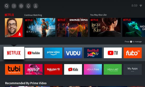 Appuyez sur la touche Home de la télécommande (symbole maison) pour afficher les applications déjà installées.