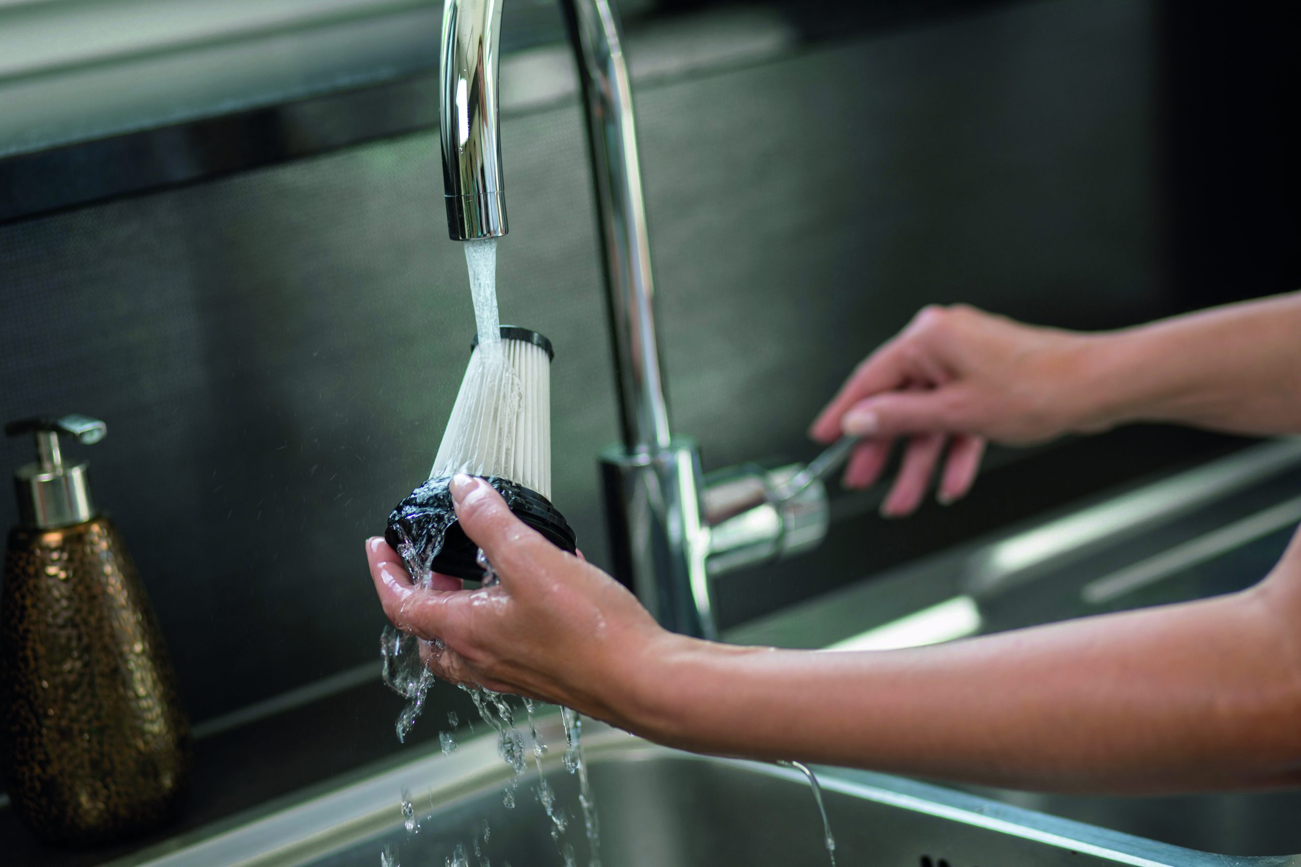 La technologie Turn&Clean vous permet de décrocher la poussière qui se concentre au niveau du Filtre Hepa10. D’une simple rotation vous prolongerez la durée de vie de ce filtre, sans pour autant le nettoyer après chaque aspiration. (visuel non contractuel)
