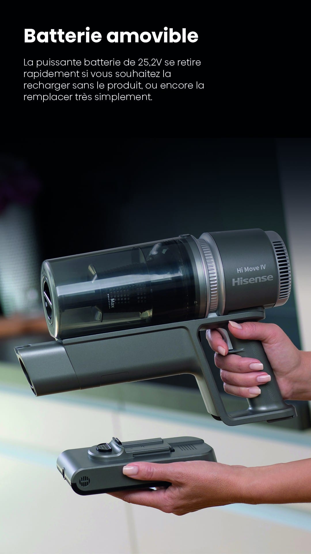 La puissante batterie de 25,2V se retire rapidement si vous souhaitez la recharger sans le produit, ou encore la remplacer très simplement. (visuel non contractuel)