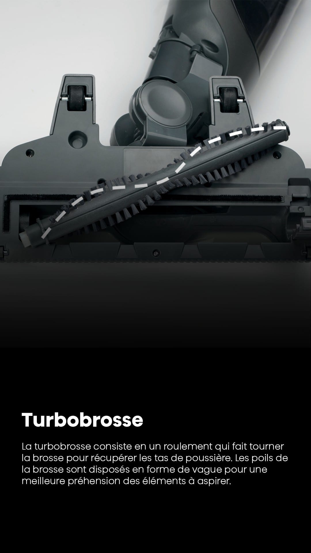 La technologie Turn&Clean vous permet de décrocher la poussière qui se concentre au niveau du Filtre Hepa10. D’une simple rotation vous prolongerez la durée de vie de ce filtre, sans pour autant le nettoyer après chaque aspiration. (visuel non contractuel)