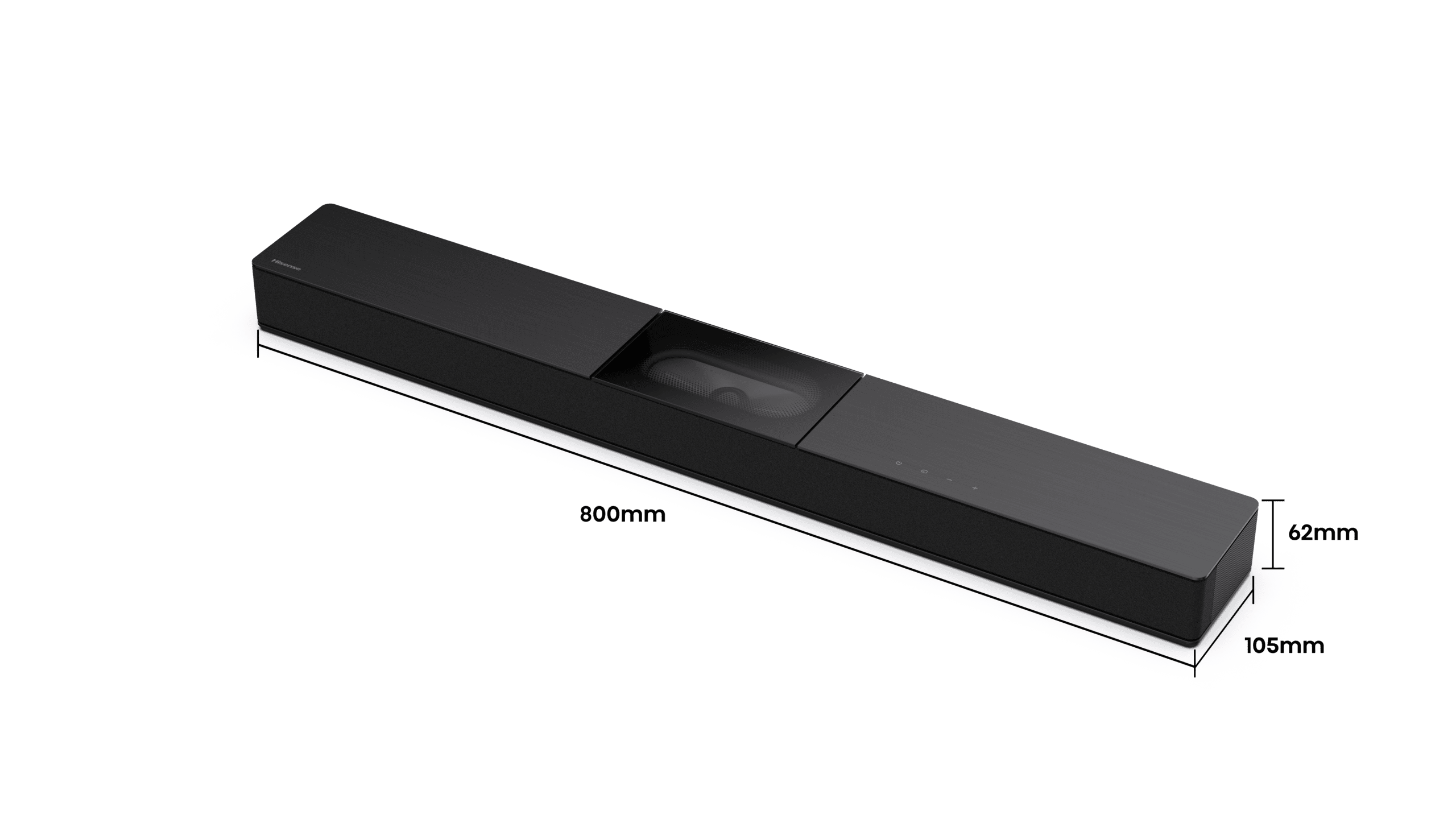 La barre de son HS2000 et son caisson de basses intégré, se démarque par son design compact et élégant.  Avec ses 80 cm de largeur cette barre de son s'intégrera facilement près de votre TV pour vous plonger au coeur de vos divertissements préférés.