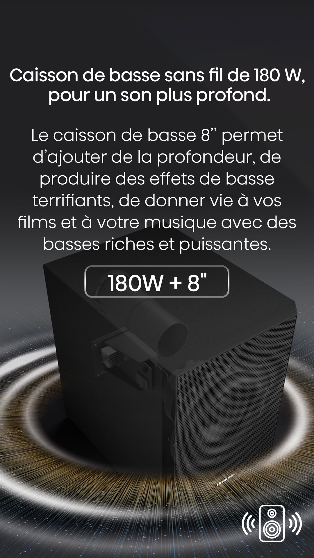 | Type de caisson de basse | Sans fil |