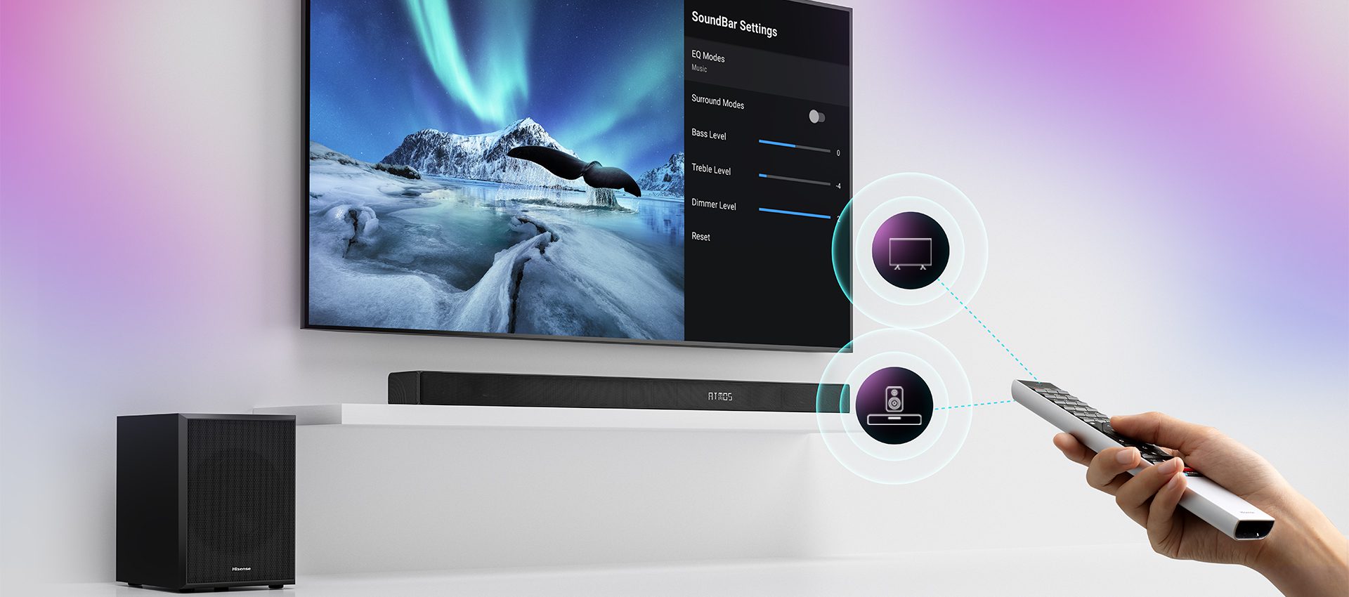 - Maintenez enfoncée la touche de la barre de son ou de la télécommande pendant 3 secondes.
