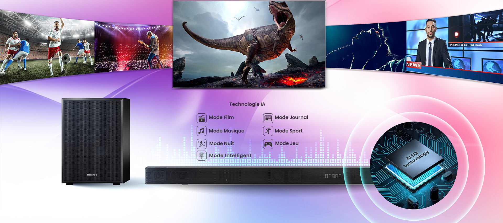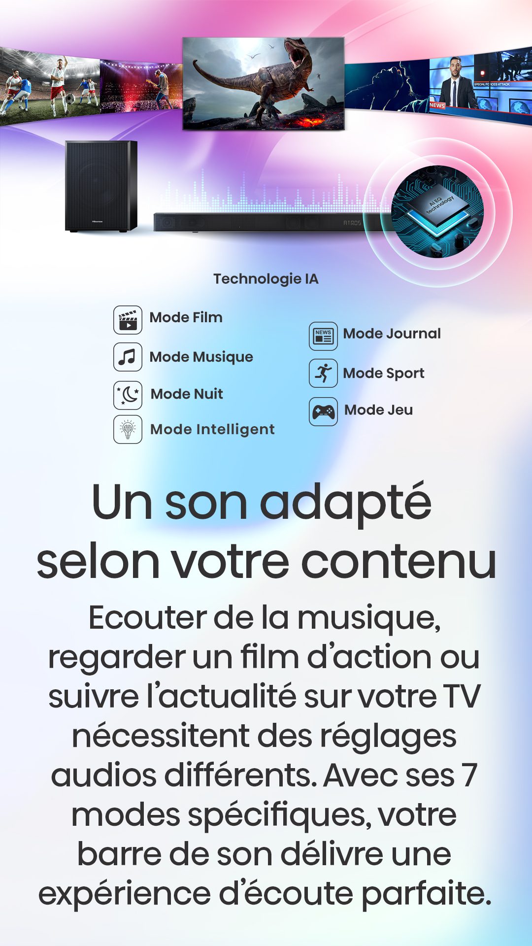 | Modes Audios | Cinéma, Musique, News, Sport, Nuit |