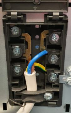 Une fois les cavaliers en place, il ne reste plus qu'à installer le câble électrique et bien visser le bornier pour un bon maintient du câble