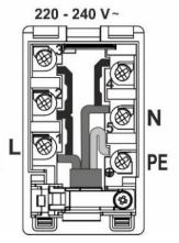 La tension entre la phase et le neutre est de 220–240 V~.