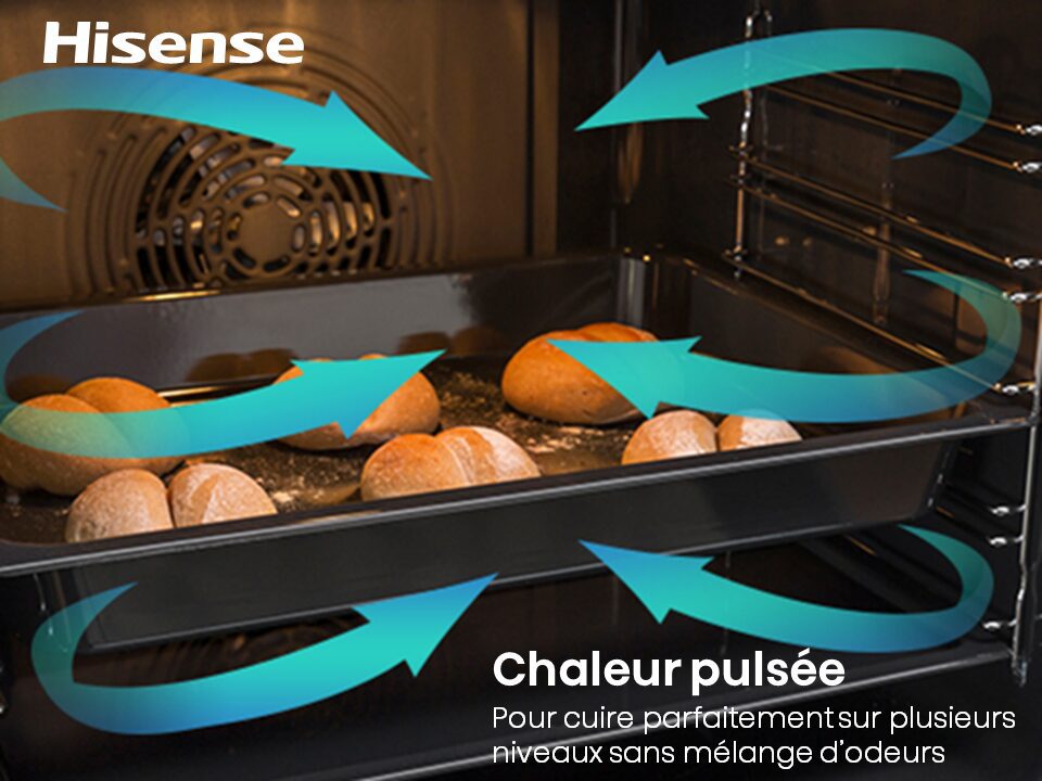 | Modes de cuisson | Convection naturelle, Chaleur Brassée, Gril à infrarouges, Chaleur tournante, Gril à infrarouges ventilé, Cuisson lente, AirFry, Pyrolyse, Décongélation, Préchauffage rapide, Surgelés, Mode Pizza |