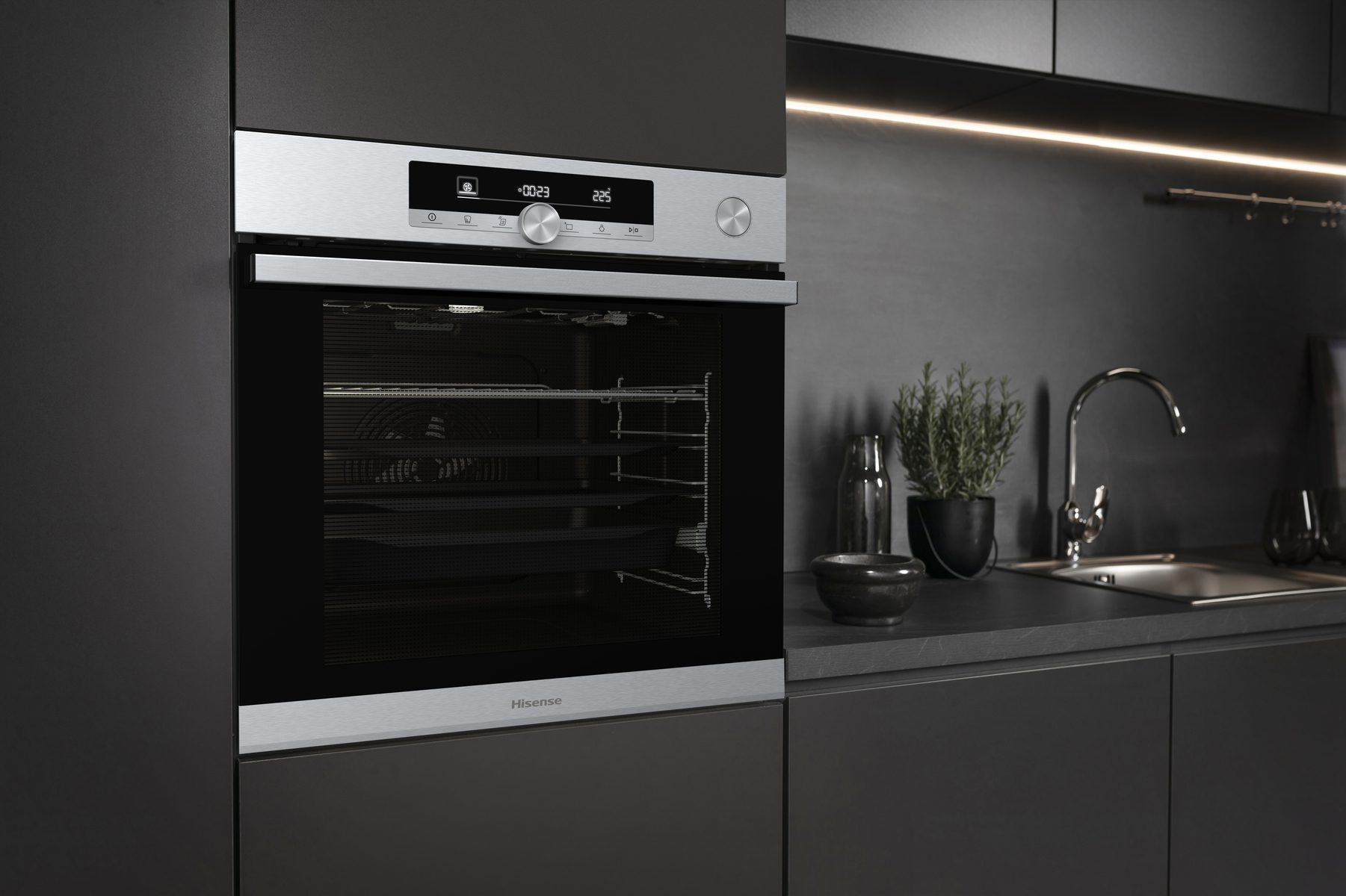 Les nouveaux fours Hisense disposent de l'une des plus grandes capacités du marché. Avec un volume de 77 litres, vous pouvez cuisiner dans de grands plats et sur plusieurs niveaux simultanément.