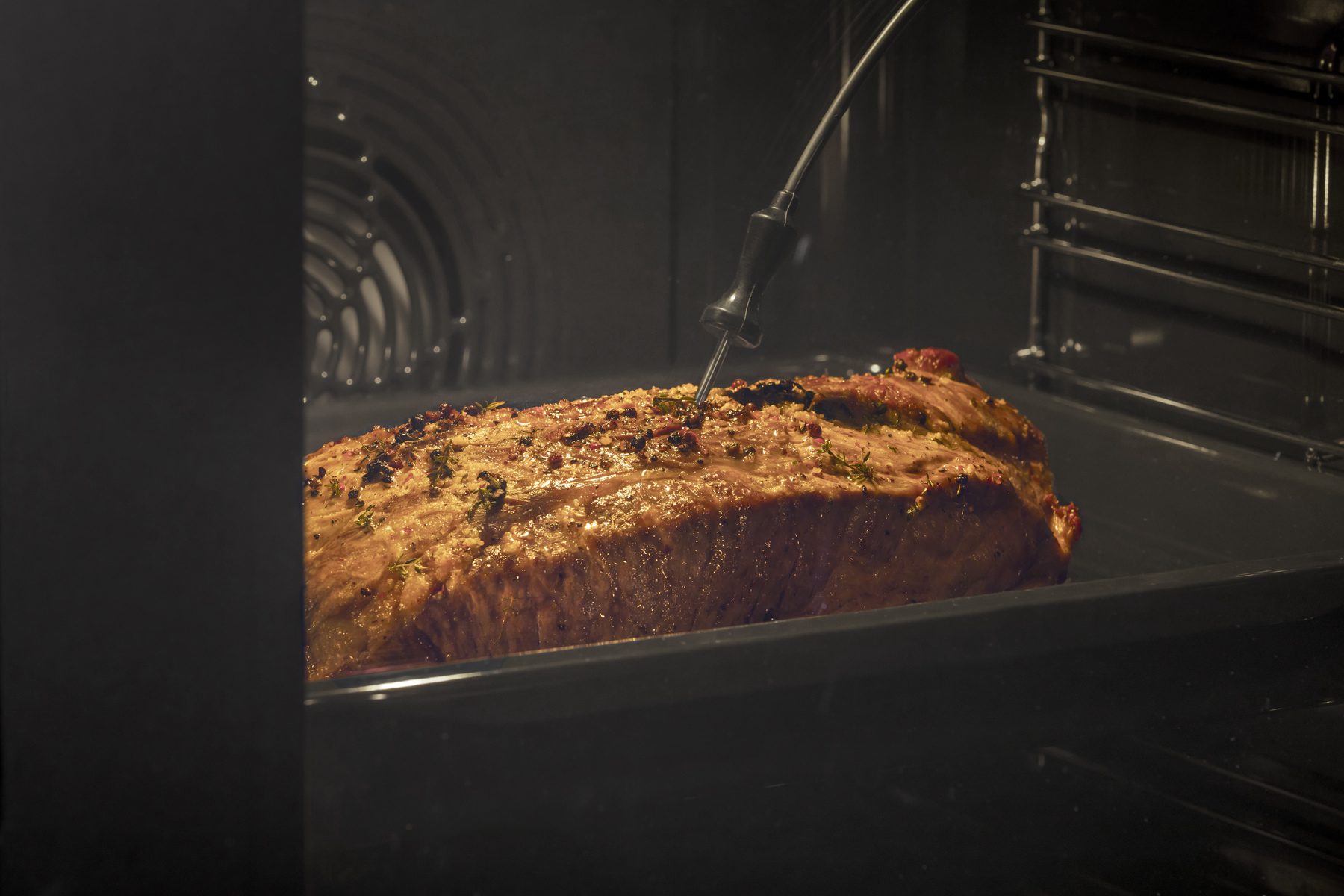 La sonde thermométrique mesure en permanence la température au cœur de la viande. Elle gère ainsi tout le processus de cuisson et active un signal sonore lorsque la température souhaitée est atteinte.