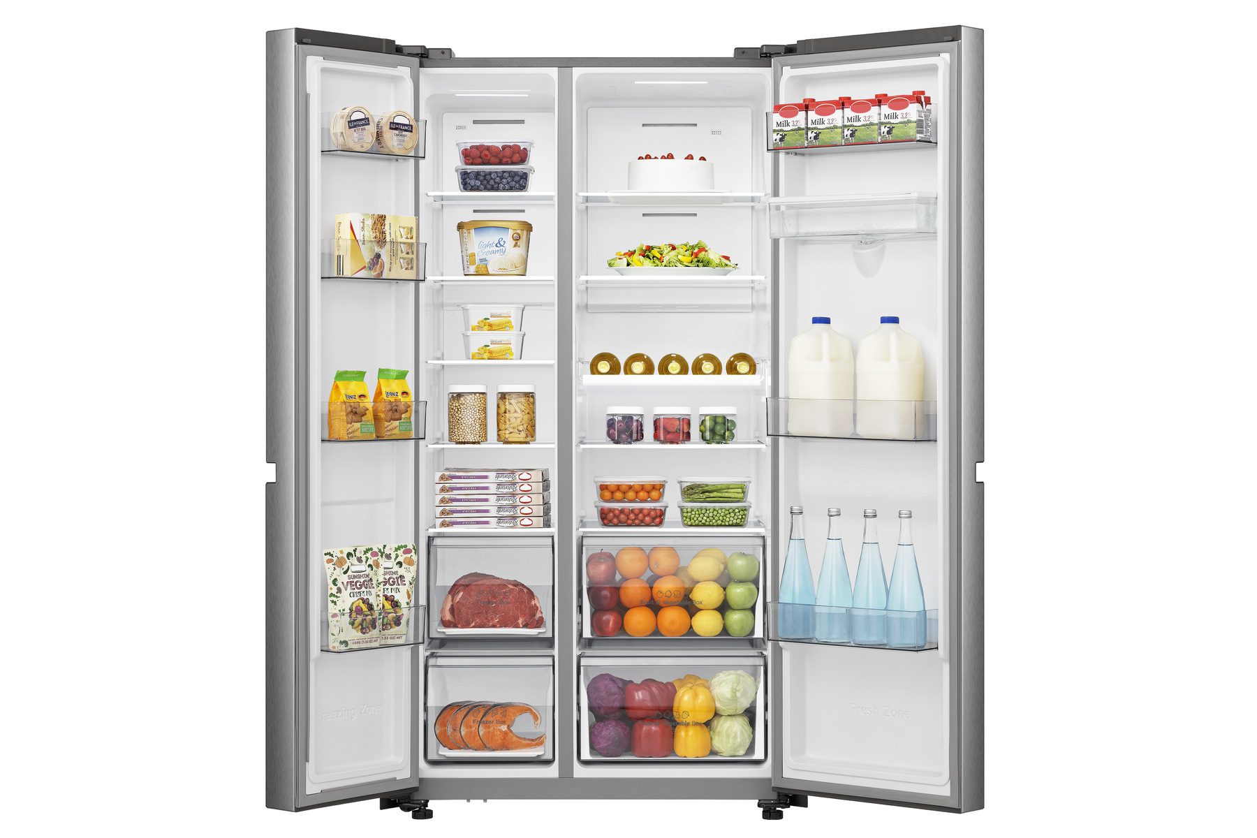 à partir de 632L et jusqu’à 647L.* Nos nouveaux réfrigérateurs américains sont conçus de sorte à ce qu'il y ait beaucoup d'espace dans les différents compartiments, pour y stocker une grande quantité d’aliments.