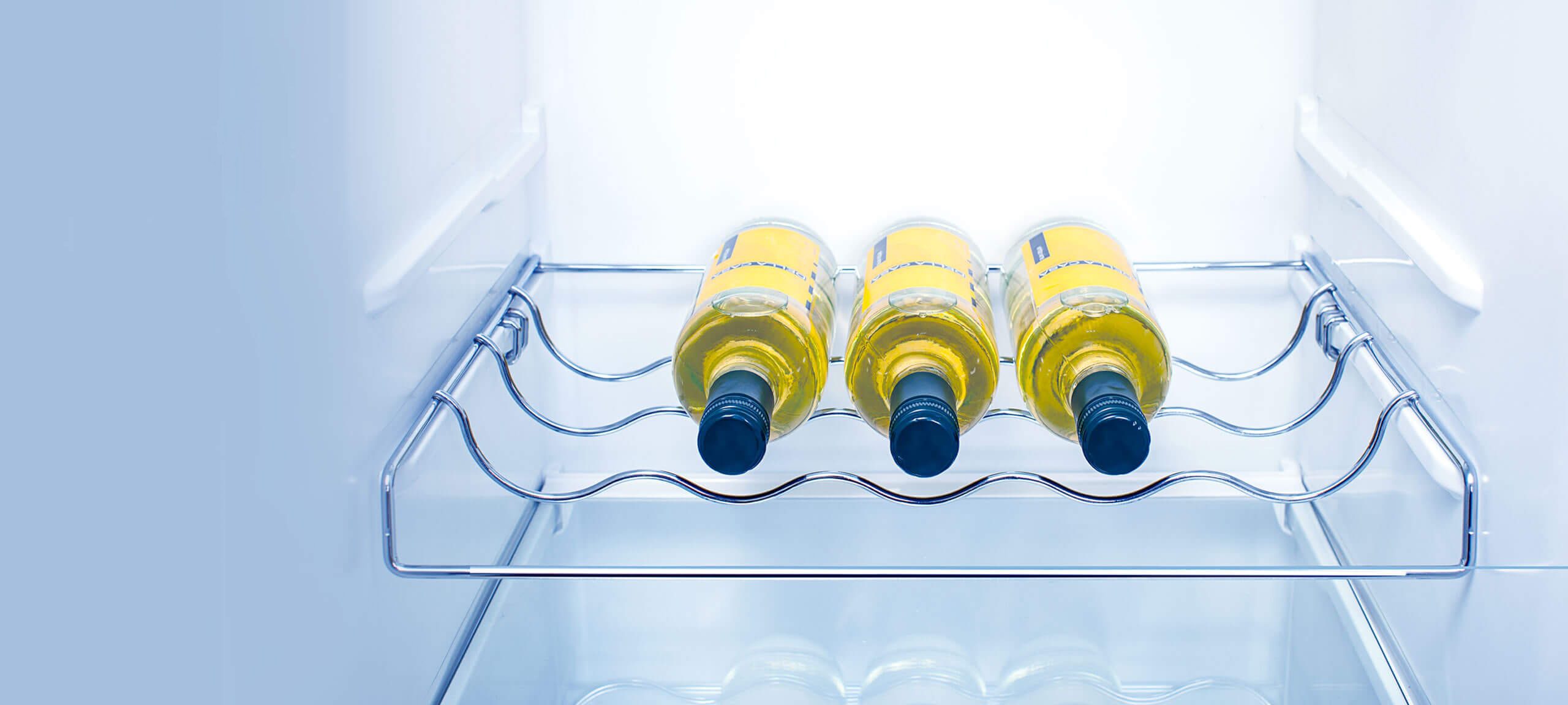 Ce porte-bouteilles chromé libère de l'espace sur la porte du réfrigérateur et empêche les bouteilles de rouler sur les étagères.