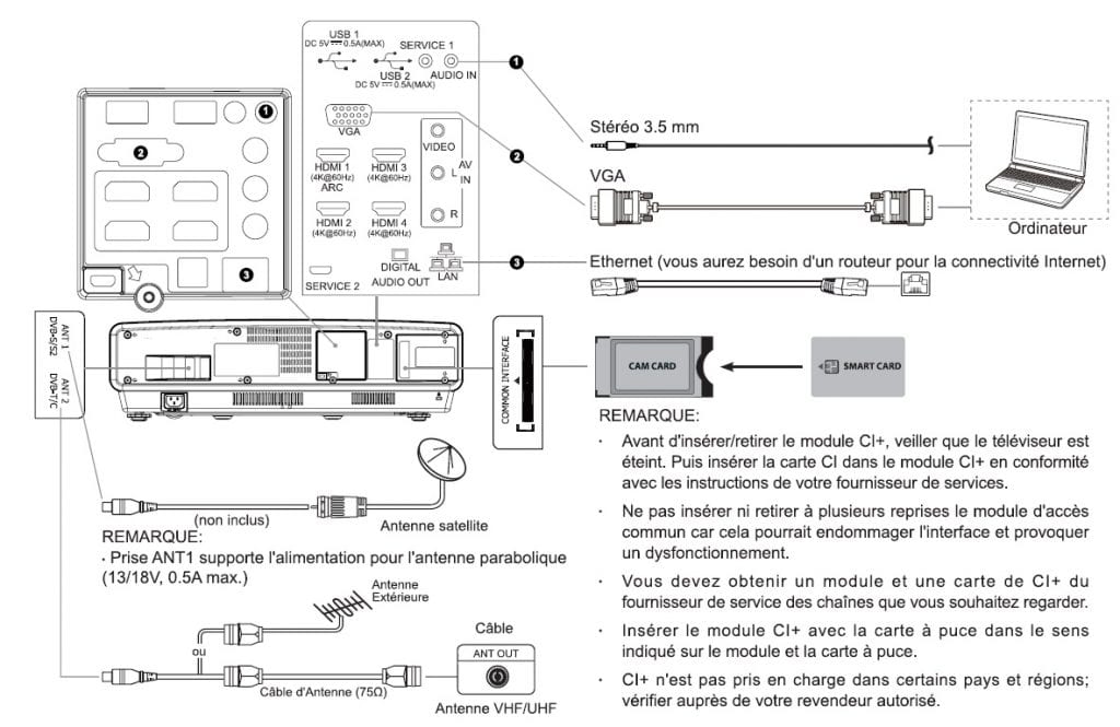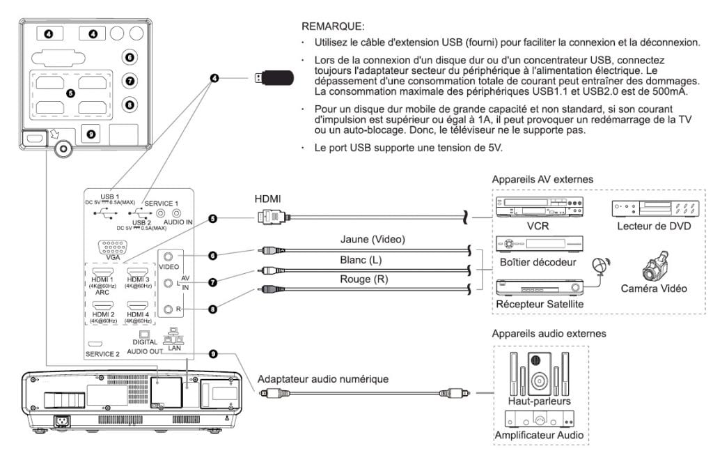 Voici les différents périphériques que vous allez pouvoir  raccoder au laser TV