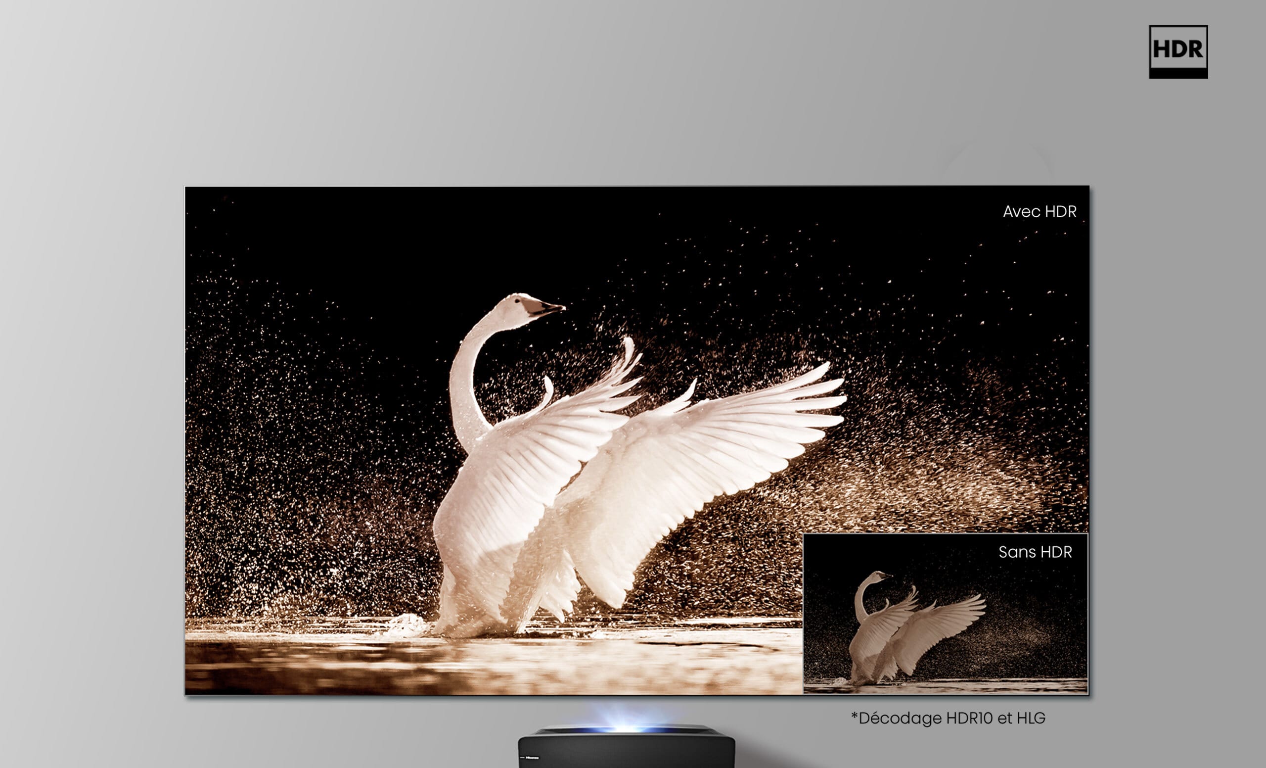 Selon le modèle acheté le label HDR variera (HDR / HDR Plus / HDR Suprême) et dépendra de la qualité de la dalle à restituer des pics de luminosité compris entre 800 et +1000 nits (ou candelas/m2) pour les modèles très haut de gamme.
