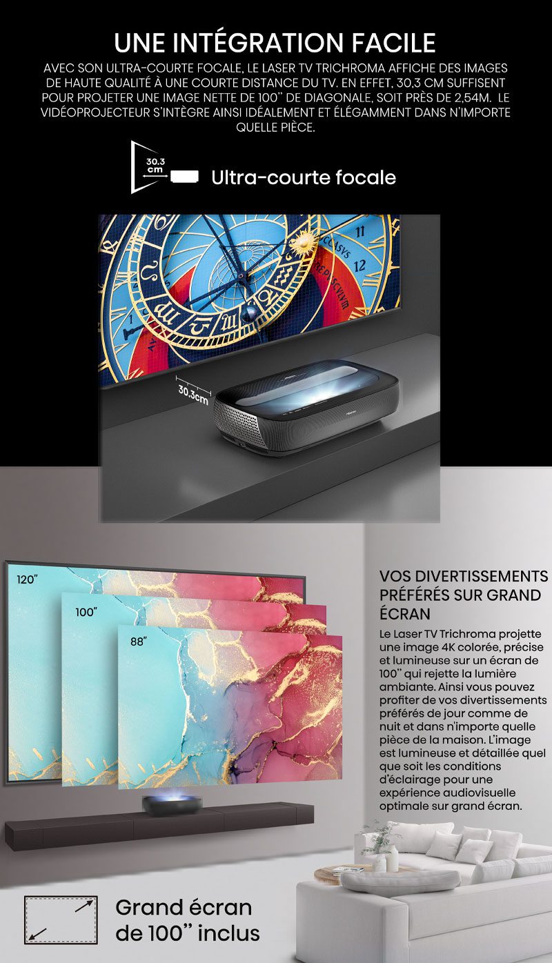 Trouver ma pièceLaser TV | 4K HDR | TRICHROMA