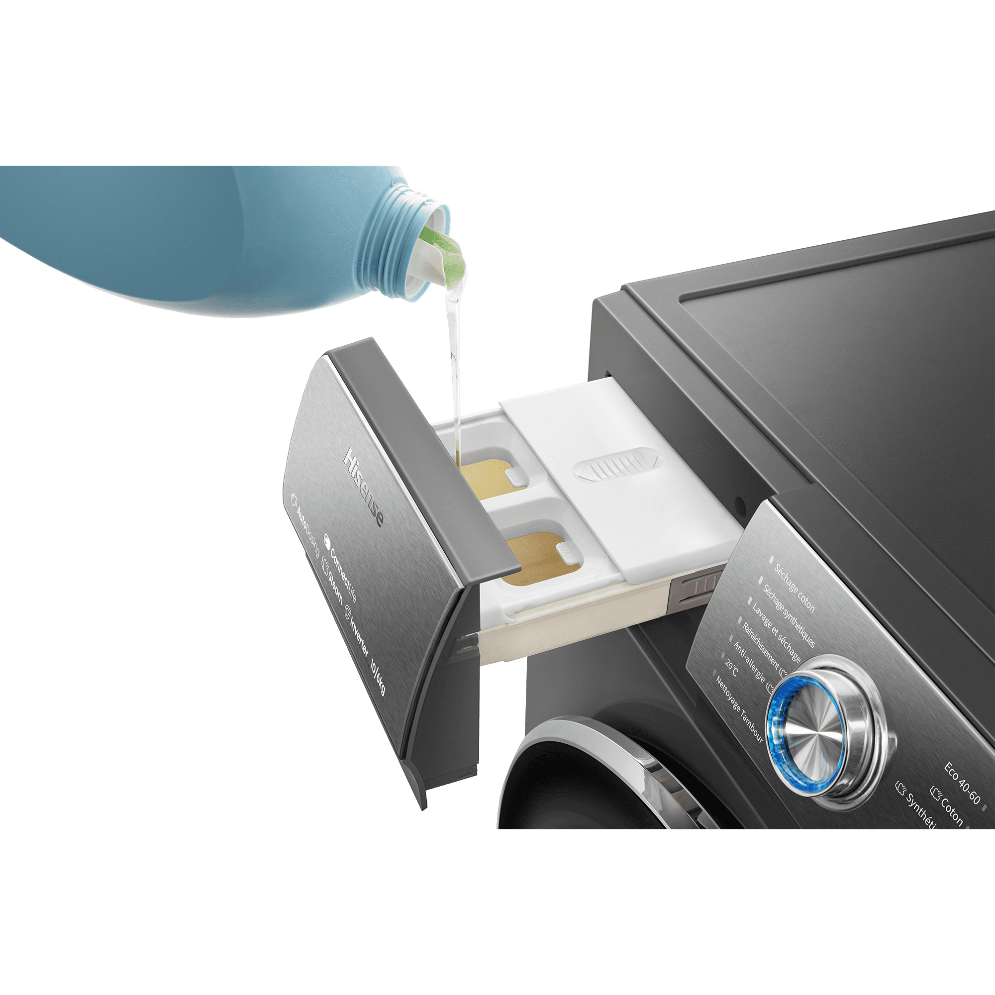 Versez la lessive et l'assouplissant une fois et stockez jusqu'à 4 semaines*. Votre lave-linge sélectionnera automatiquement la dose parfaite en fonction de votre charge de linge, vous permettant d'économiser du détergent, de l'eau et de l'énergie. Vos vêtements en ressortiront propre et soigné.