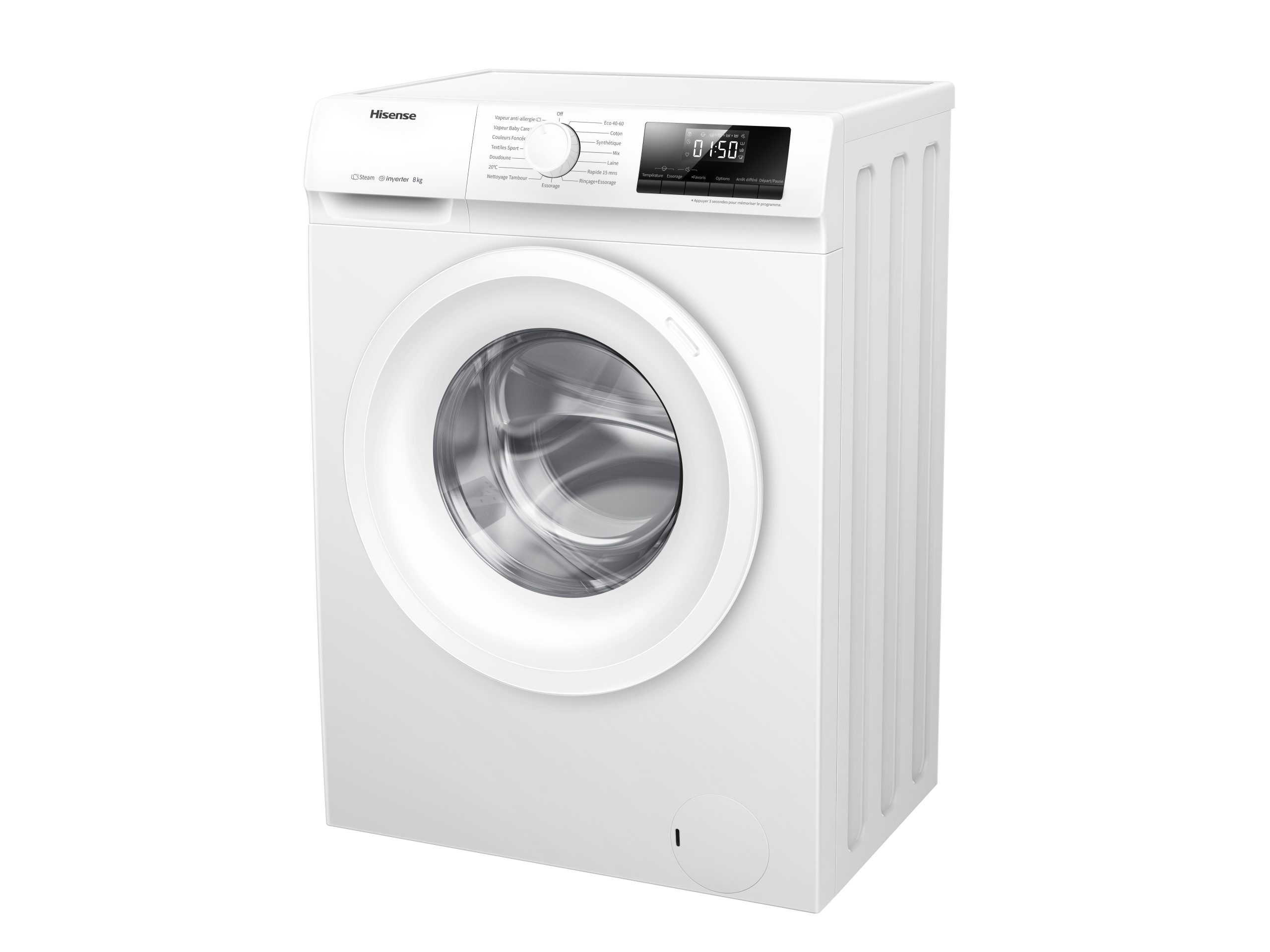 | Programmes | Coton, Synthétiques, Laine, Rapide 15 mins, Mix, Spécial bébé , Soie / Délicat, Lavage & séchage en 60', Séchage coton, Séchage synthétiques, Nettoyage du tambour, Rinçage + Essorage, Essorage |