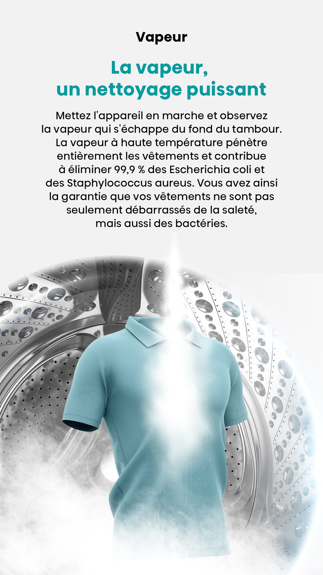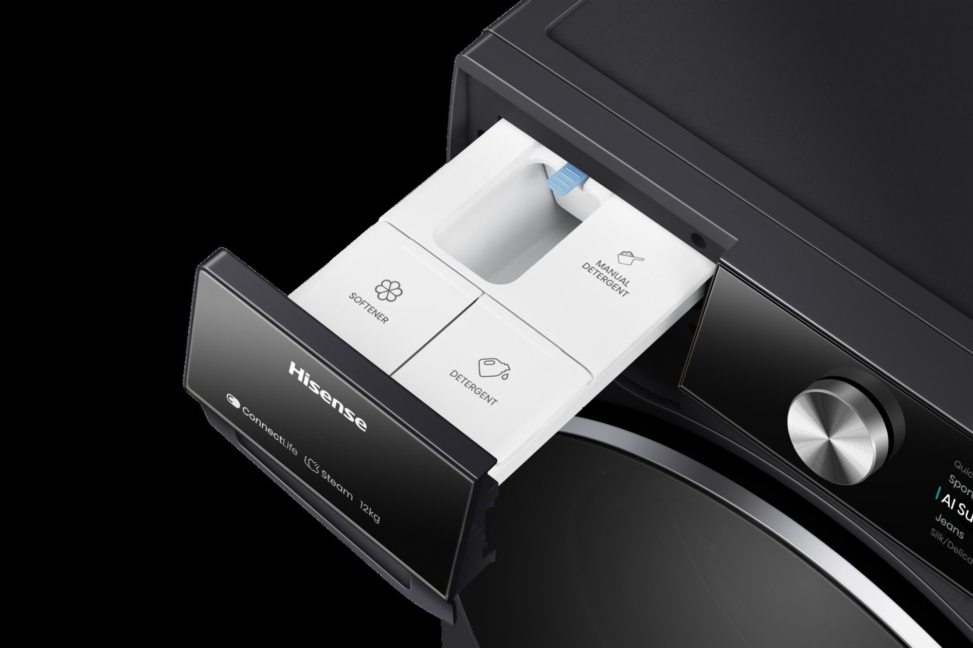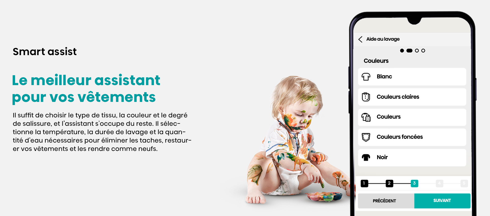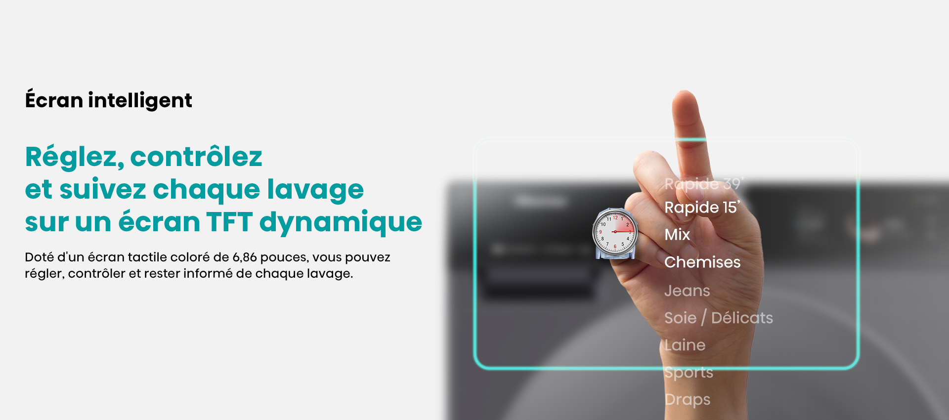 ProgrammesCoton, Coton Eco, Laine, Mix, Textile Sport, Délicat, Spécial bébé, Couleurs foncées, Couette, Rapide 15 mins, Rinçage + Essorage, Essorage, Nettoyage du tambour, AI Super Wash
