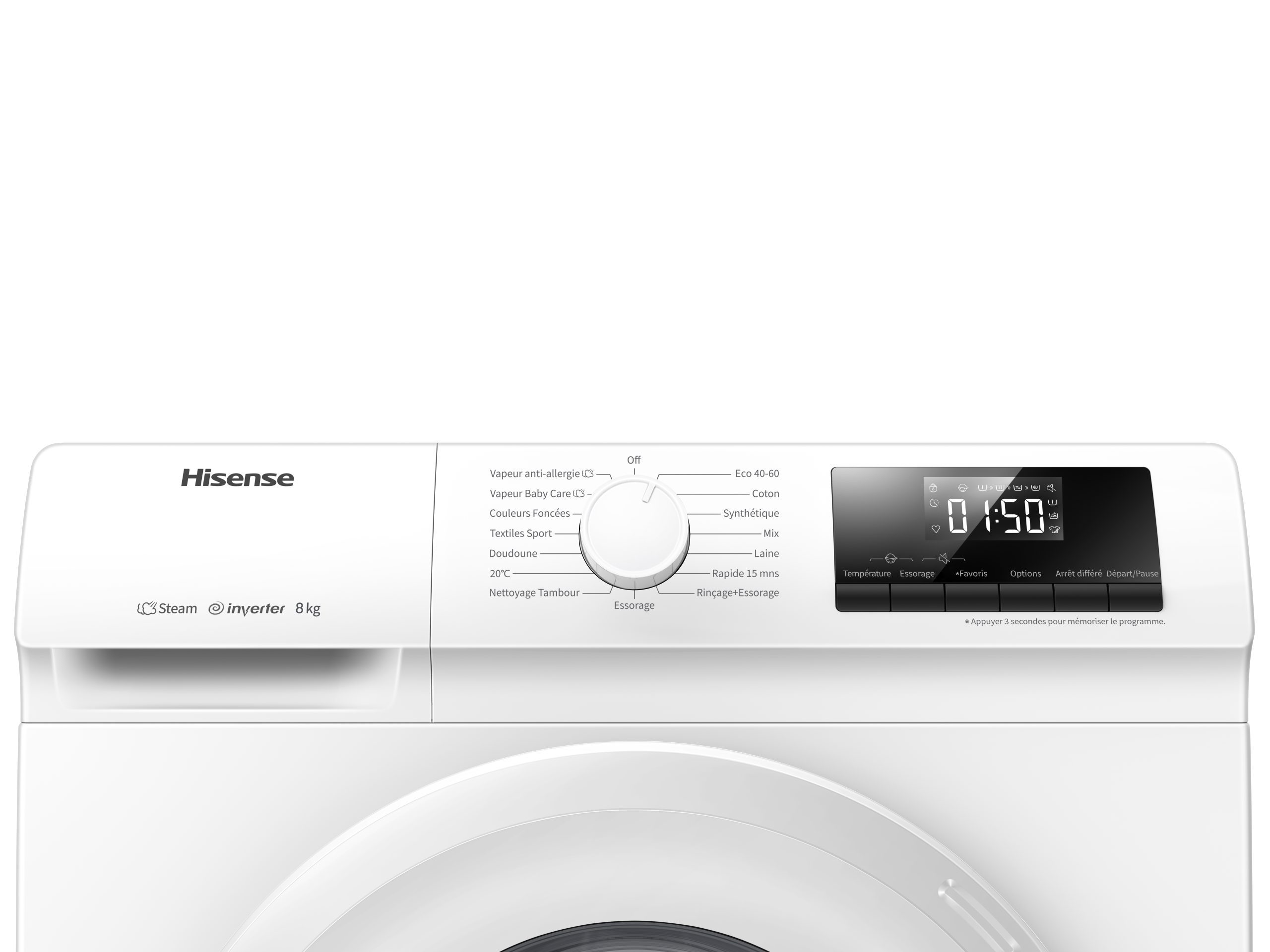 | Programmes | Laine, Eco 40-60, Nettoyage du tambour, Coton, Mix, Anti-allergie (Vapeur), Bébé (Vapeur), Couleurs foncées, Sport, Couette, 20°, Rinçage + Essorage, Essorage, Rapide 15 min, Synthétiques |