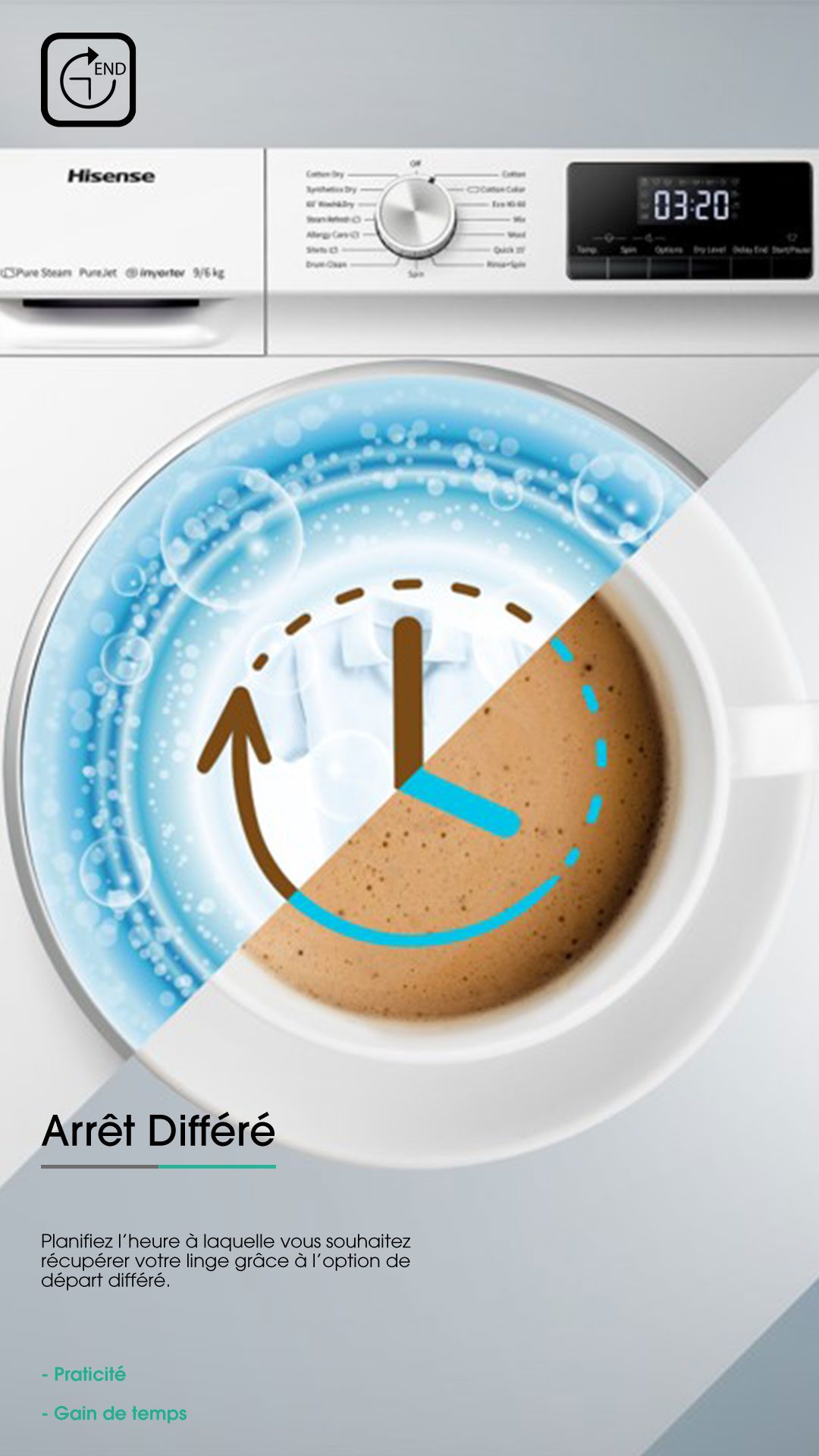 La technologie vapeur Hisense éliminera les résidus allergiques logés dans les vêtements en libérant rapidement des quantités massives de vapeur dans le tambour.