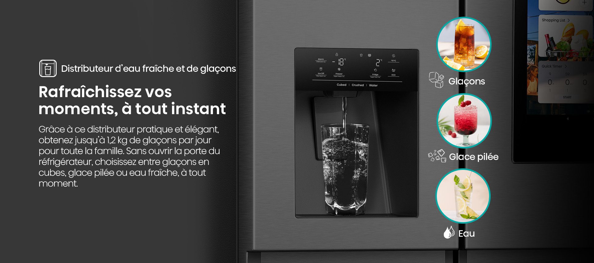 Distributeur d'eau, de glaçons et de glace piléeOui