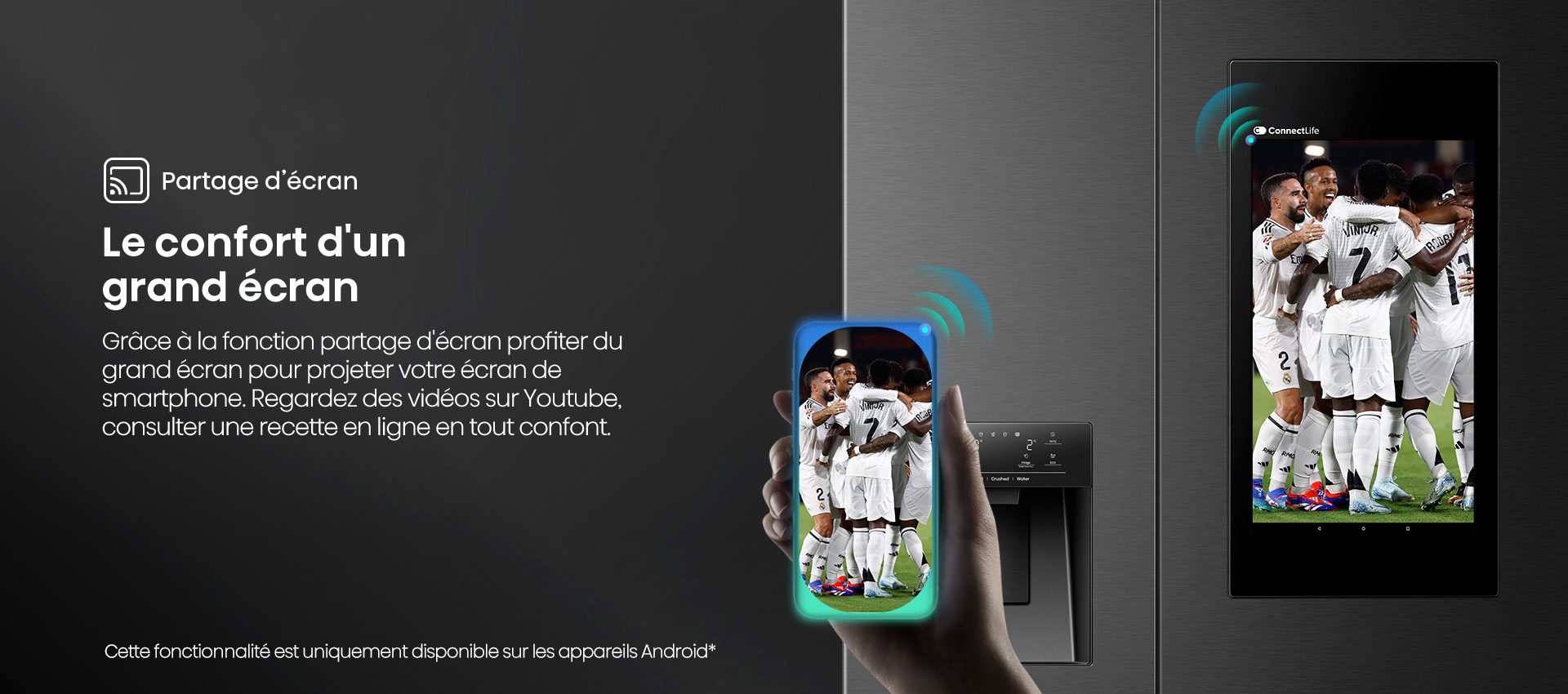 Rated 4 de 5 de par Bon produit très esthétique Réfrigérateur qui correspond à mes attentes, très esthétique et pratique. Possibilité d’utiliser une partie du congélateur en réfrigérateur. Les doubles portes sont vraiment pratique pour l’utilisation. Un seul regret, le miror screen ne fonctionne pas avec iPhone donc l’écran se trouvant sur la porte est inutile pour nous.