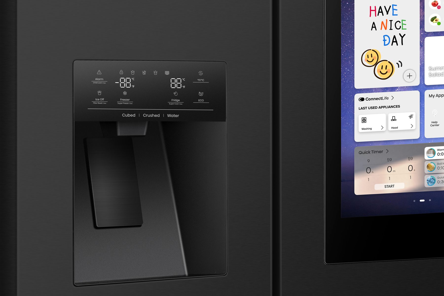 Réfrigérateur qui correspond à mes attentes, très esthétique et pratique. Possibilité d’utiliser une partie du congélateur en réfrigérateur. Les doubles portes sont vraiment pratique pour l’utilisation. Un seul regret, le miror screen ne fonctionne pas avec iPhone donc l’écran se trouvant sur la porte est inutile pour nous.