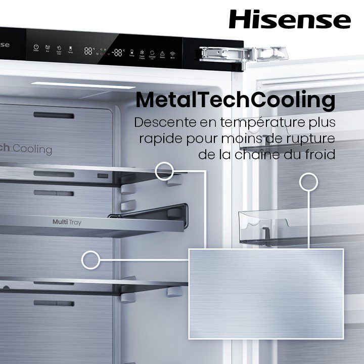 La paroi arrière du réfrigérateur est recouverte d'acier inoxydable, ce qui garantit une distribution uniforme de l'air froid. Cette combinaison de technologies avancées garantit des niveaux de température et d'humidité idéaux à tout moment.