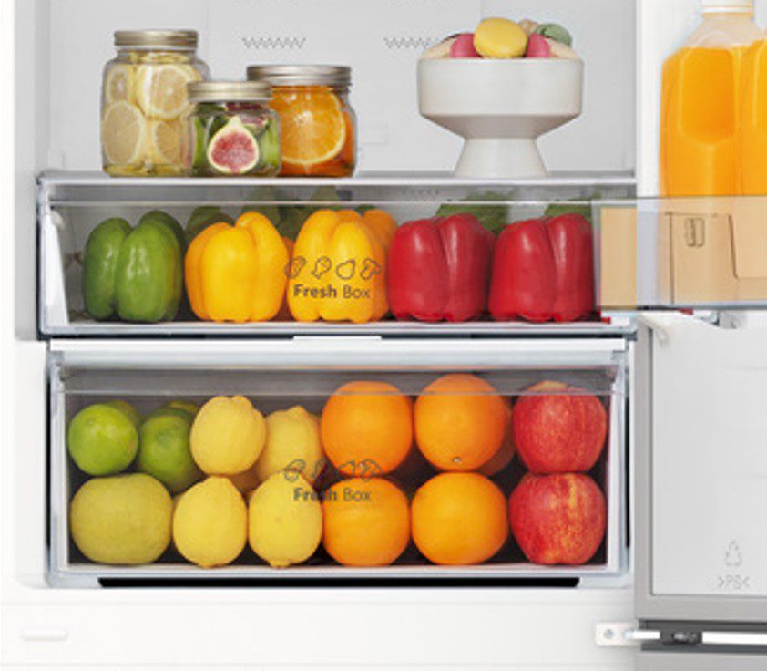 Vos denrées fraiches sont mieux conservées grâce à un contrôle d’humidité par commande du ou des bacs fruits et légumes. Selon la nature de vos aliments, vous pouvez choisir un taux d’humidité faible à élevé.