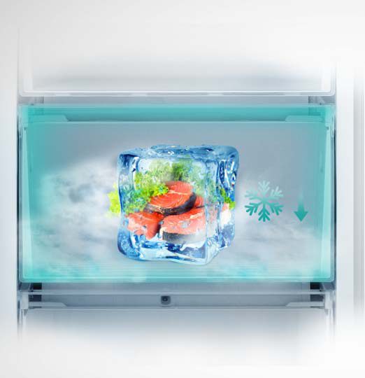 La fonction "Super Freeze" permet d'abaisser rapidement la température du congélateur et de congeler les aliments beaucoup plus rapidement que d'habitude. Cela permet de conserver toutes les vitamines et les nutriments contenus dans les aliments, afin qu'ils soient aussi frais que le jour où vous les avez achetés.