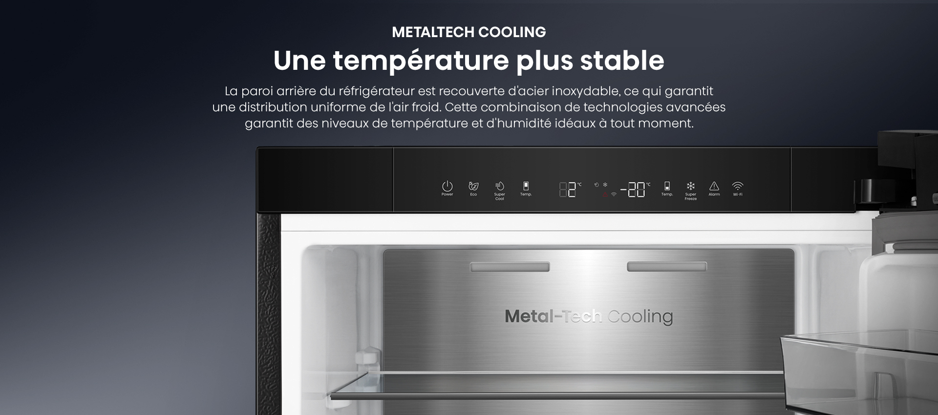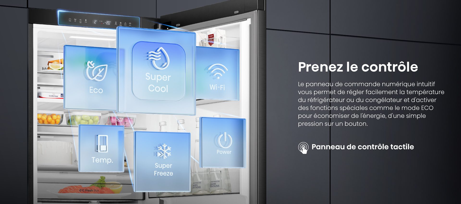| Panneau de contrôle | Intérieur, LED tactile |