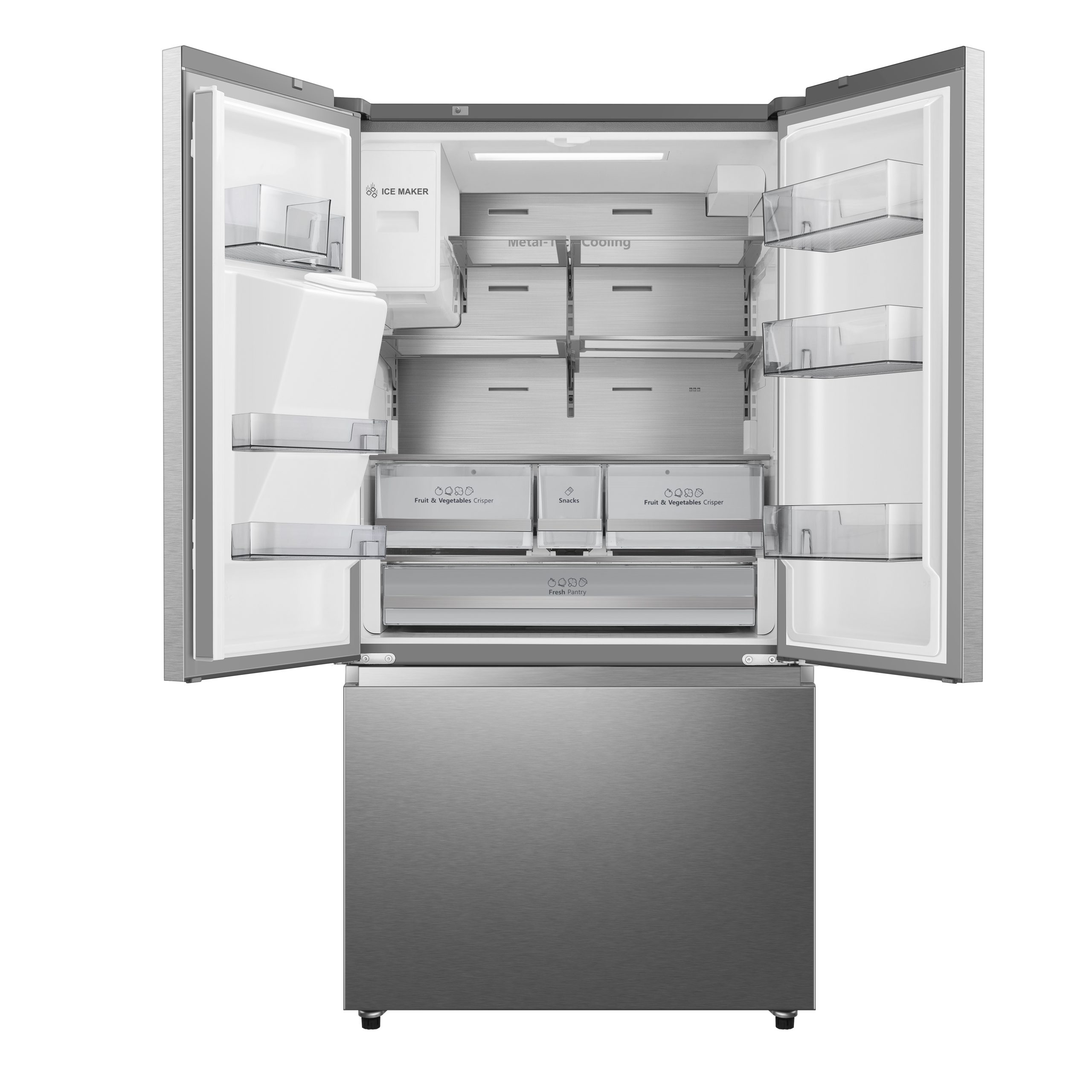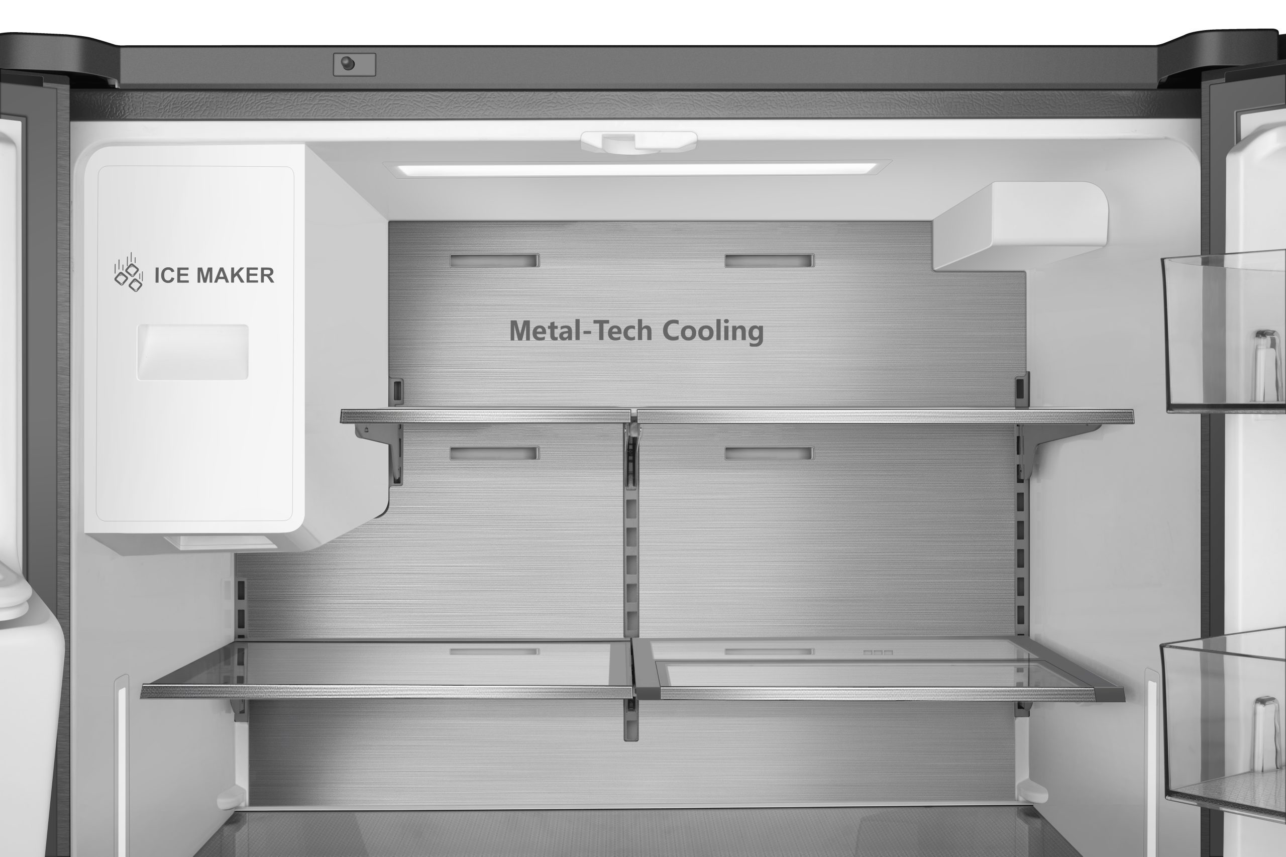 La paroi arrière du réfrigérateur est recouverte d'acier inoxydable, ce qui garantit une distribution uniforme de l'air froid. Cette combinaison de technologies avancées garantit des niveaux de température et d'humidité idéaux à tout moment.