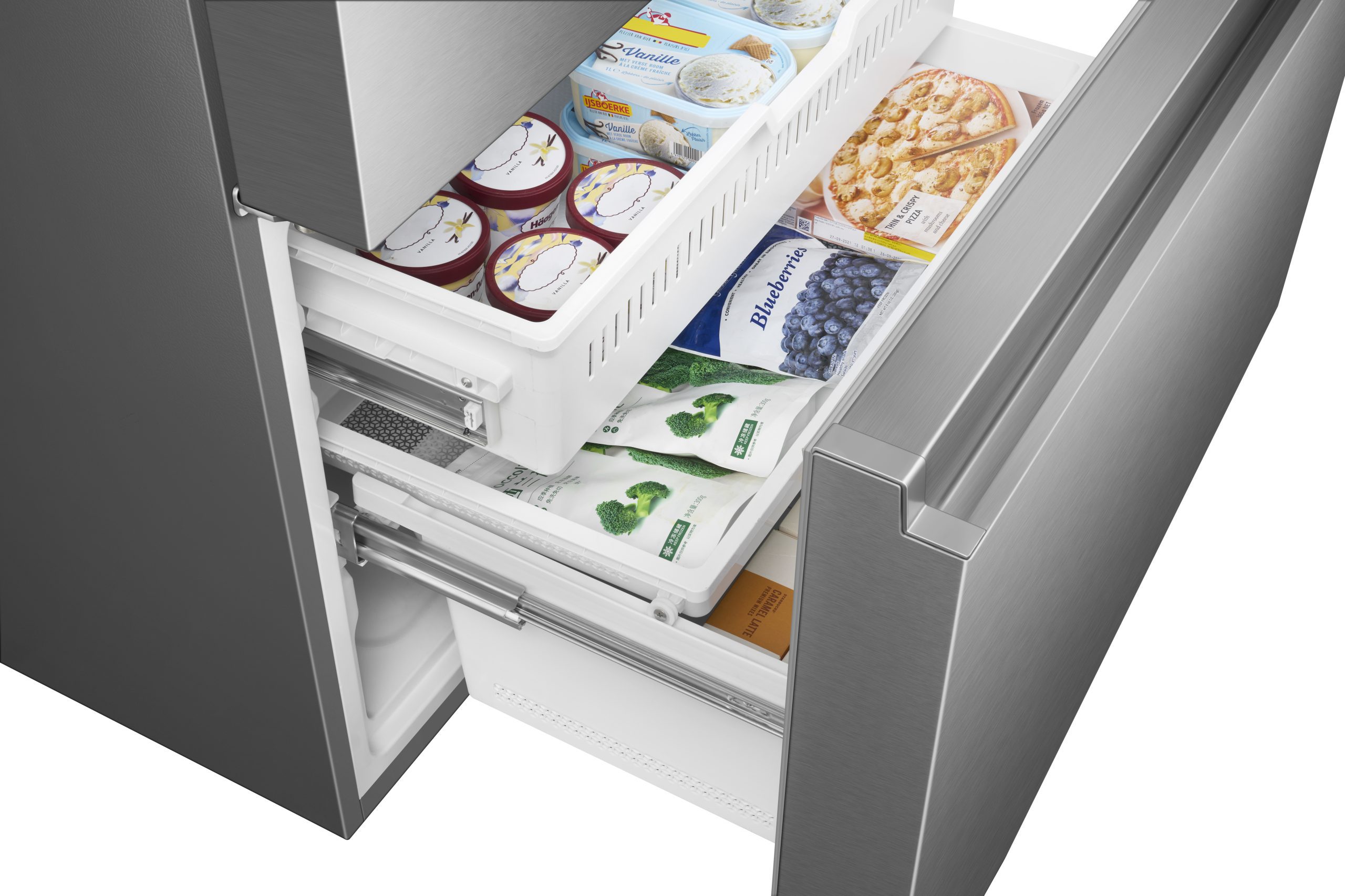 La fonction "Super Freeze" permet d'abaisser rapidement la température du congélateur et de congeler les aliments beaucoup plus rapidement que d'habitude. Cela permet de conserver toutes les vitamines et les nutriments contenus dans les aliments, afin qu'ils soient aussi frais que le jour où vous les avez achetés.