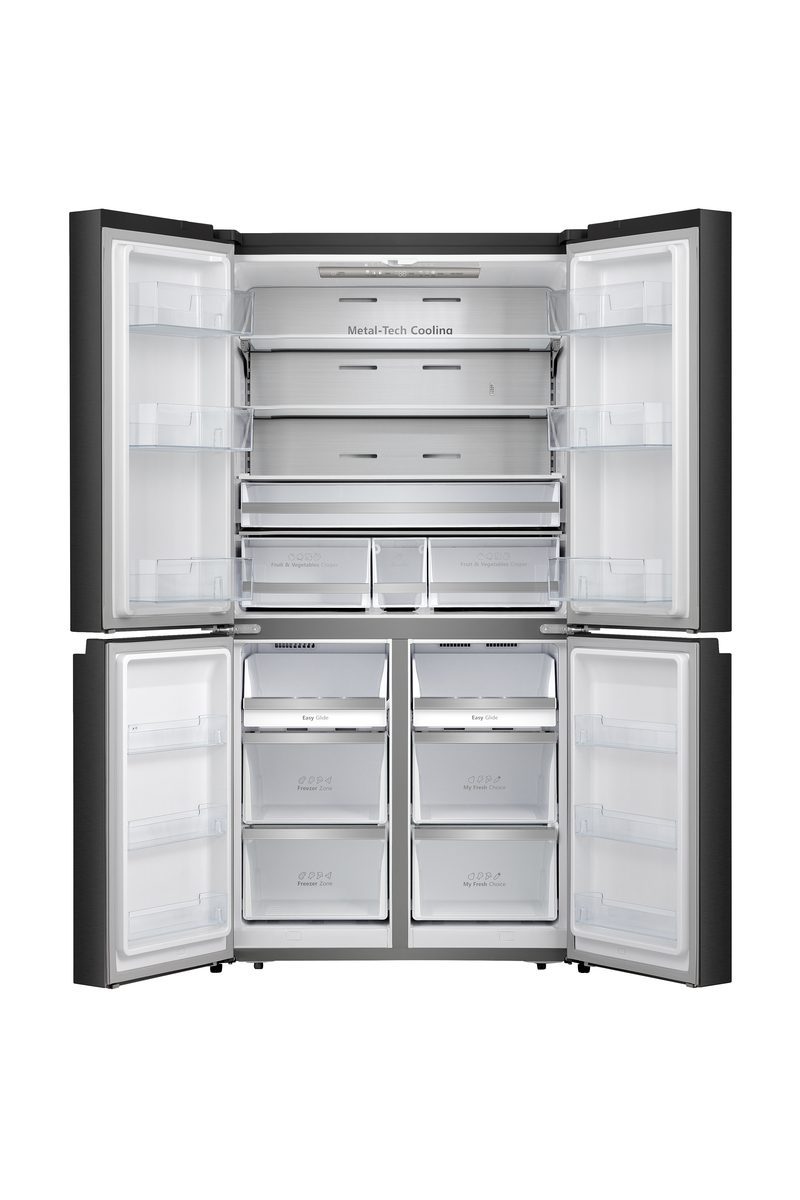 Le réfrigérateur multi portes Hisense RQ758N4SAF1 se dote de fonctionnalités adaptées à vos besoins, à commencer par la taille de ce frigo américain, d’une capacité de 606 L et son écran LED tactile. Doté de la technologie Dual Tech Cooling, il dispose de deux systèmes de distribution d'air froid distincts permettant d’éviter les mélanges d’odeur. Cette fonctionnalité permet de garder un air froid et humide dans votre réfrigérateur, et sec (grâce au froid ventilé) au sein de votre congélateur pour une meilleure conservation des aliments. Le multi portes bénéficie également de la technologie Metal Cooling, une plaque d'acier inoxydable située dans le fond du réfrigérateur, permettant de maintenir un air froid homogène à chaque étage. La fraicheur des aliments est préservée plus longtemps.