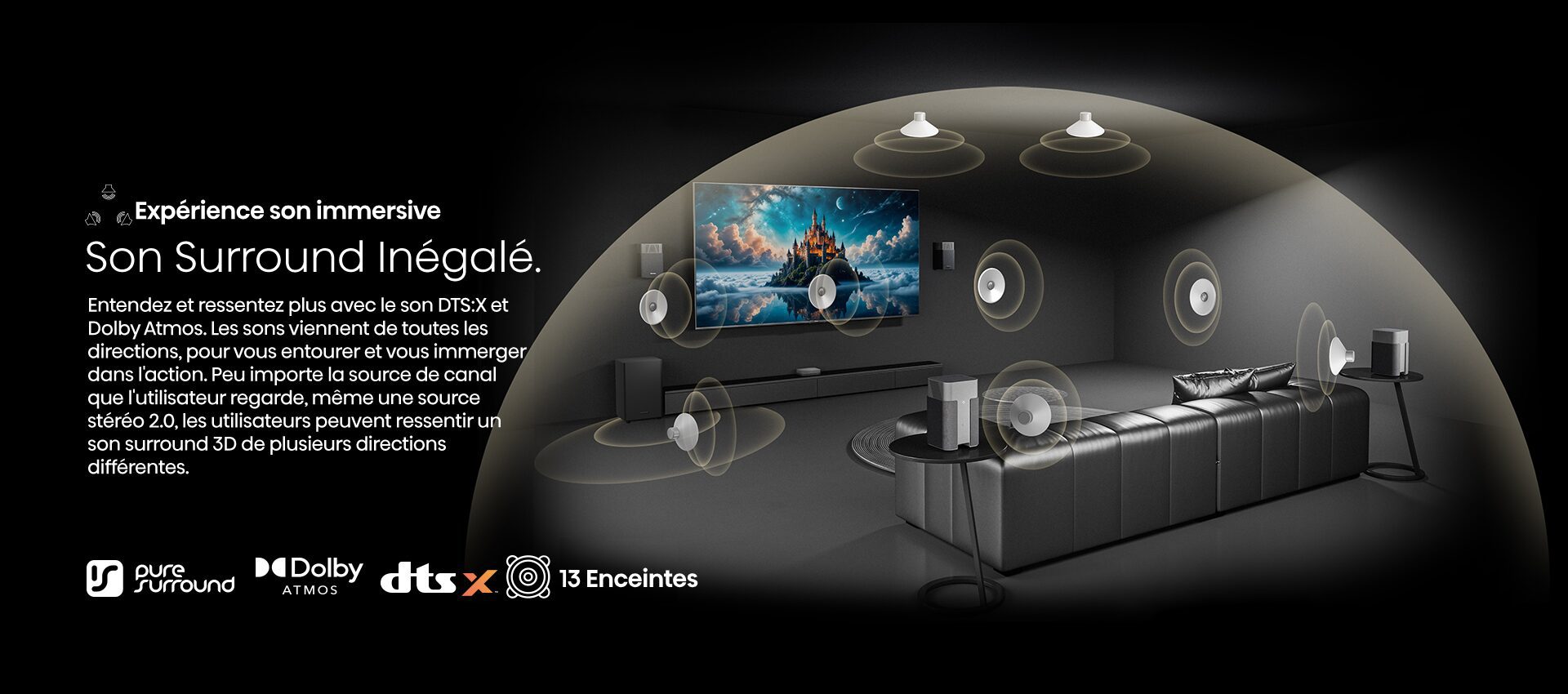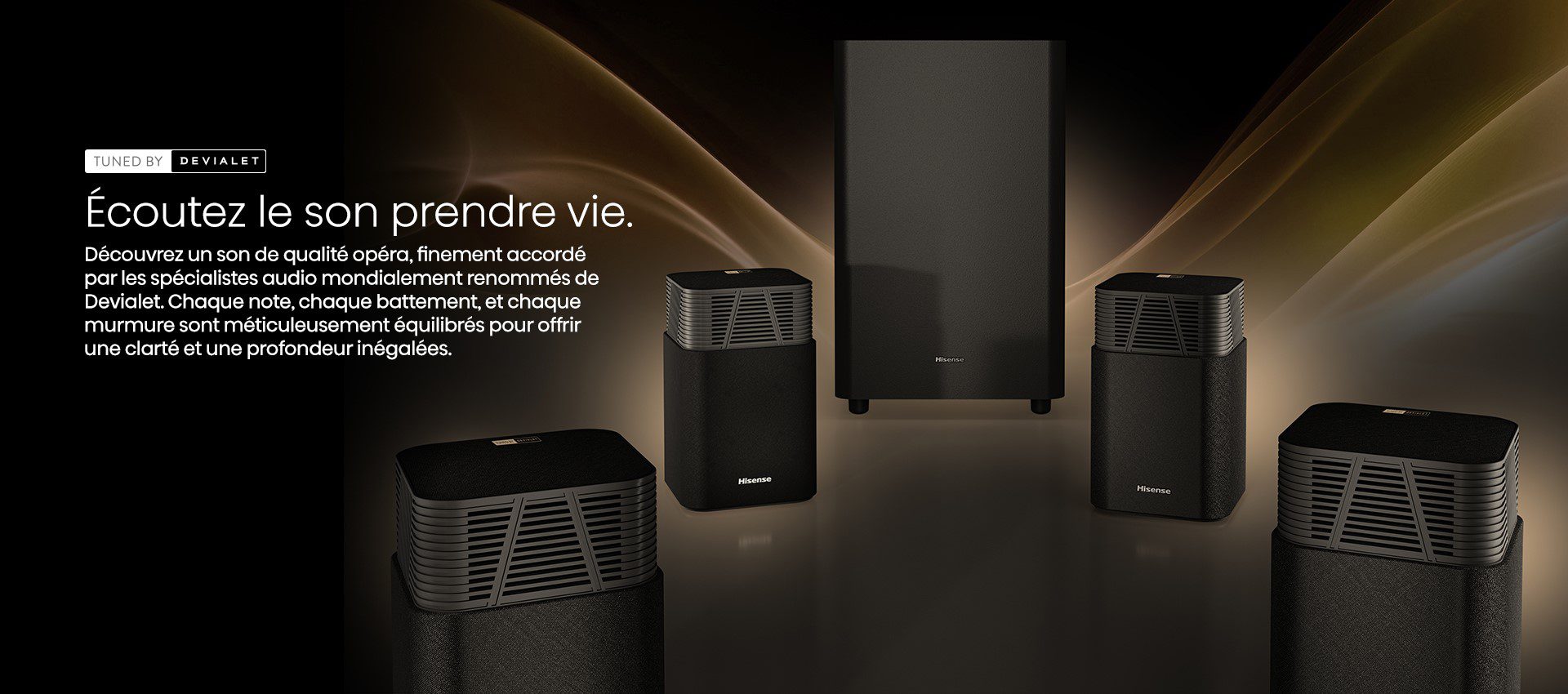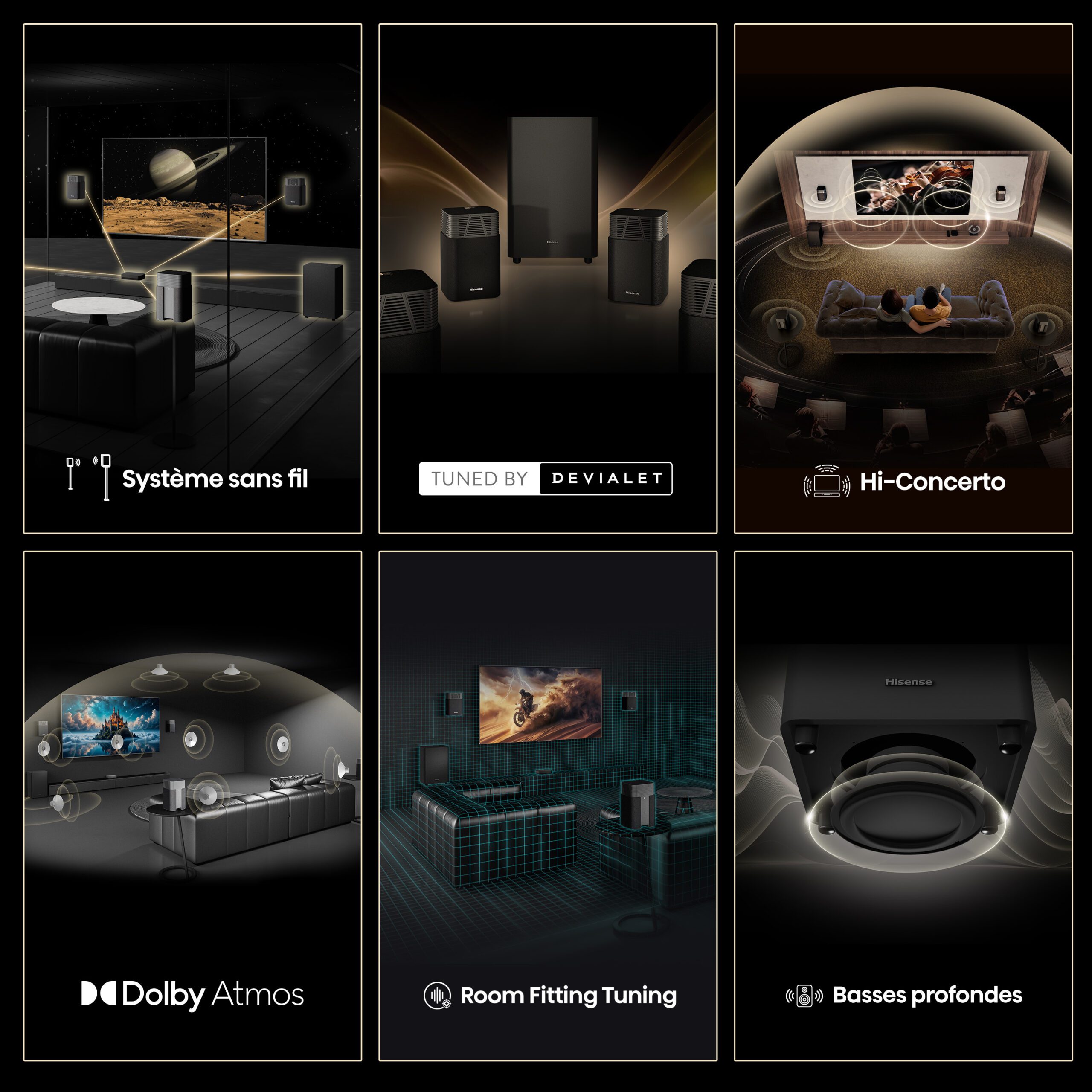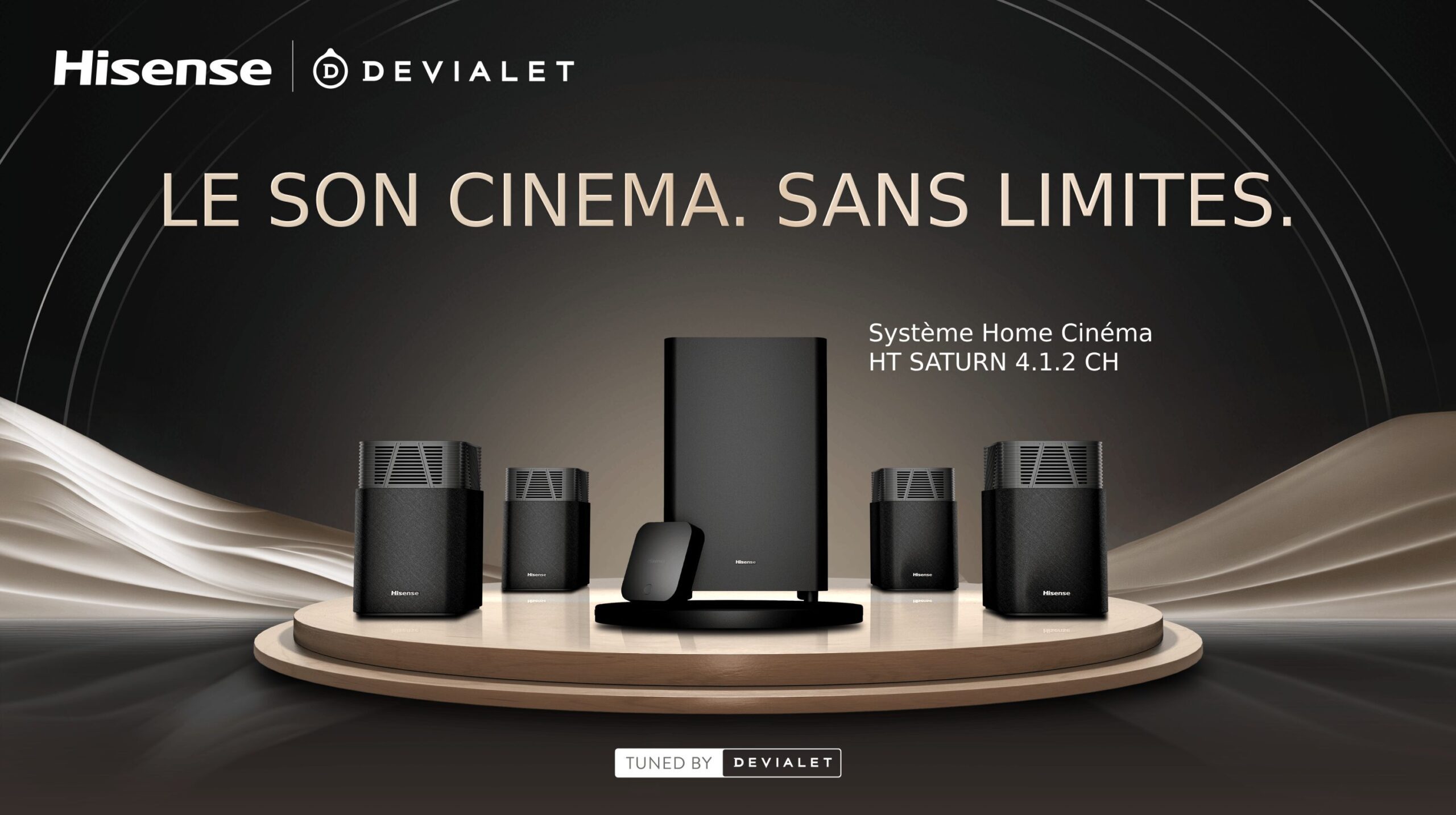 Le Hisense HT Saturn conjugue un design compact, une mise en œuvre plug-and-play et une scène sonore immersive signée Devialet. Il peut très bien répondre à vos attentes si vous recherchez un vrai son cinéma sans les contraintes d’installation d’un 5.1 filaire. Le partenariat avec Devialet se traduit par une calibration précise et une restitution équilibrée, capable de reproduire efficacement les effets verticaux Dolby Atmos et DTS:X dans un espace tridimensionnel cohérent. Le système brille par sa puissance contrôlée et son homogénéité, tout en offrant une scène ample et aérienne pour un matériel sans fil.