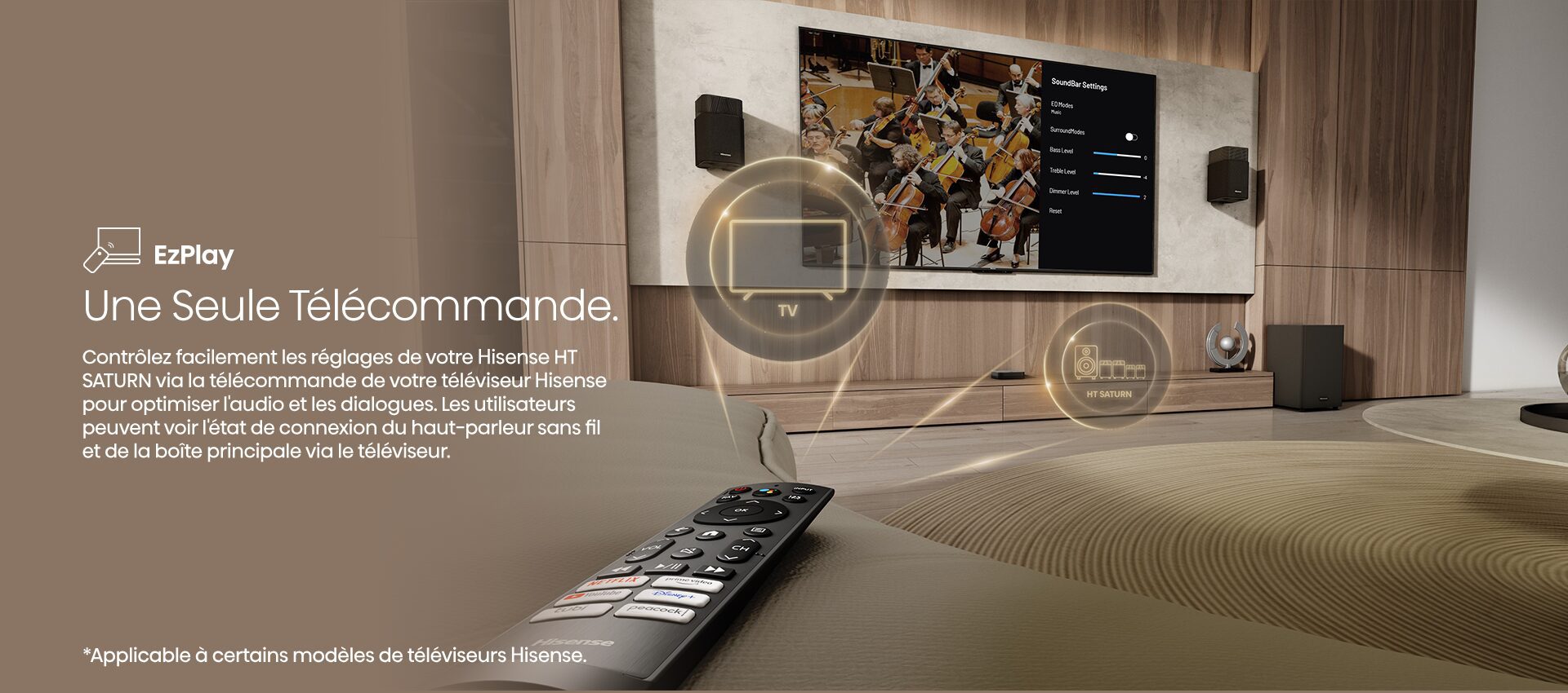 De par son format quadriphonique, renforcé d’un caisson de basses, le Hisense HT Saturn offre une expérience home cinéma complète et immersive. Le rendu sonore se démarque par sa hauteur, ainsi que par son excellente reproduction des effets frontaux et arrière. [...] Le HT Saturn brille aussi par son caractère plug-and-play et son expérience utilisateur, qui demeure convaincante malgré l’absence d’app mobile.