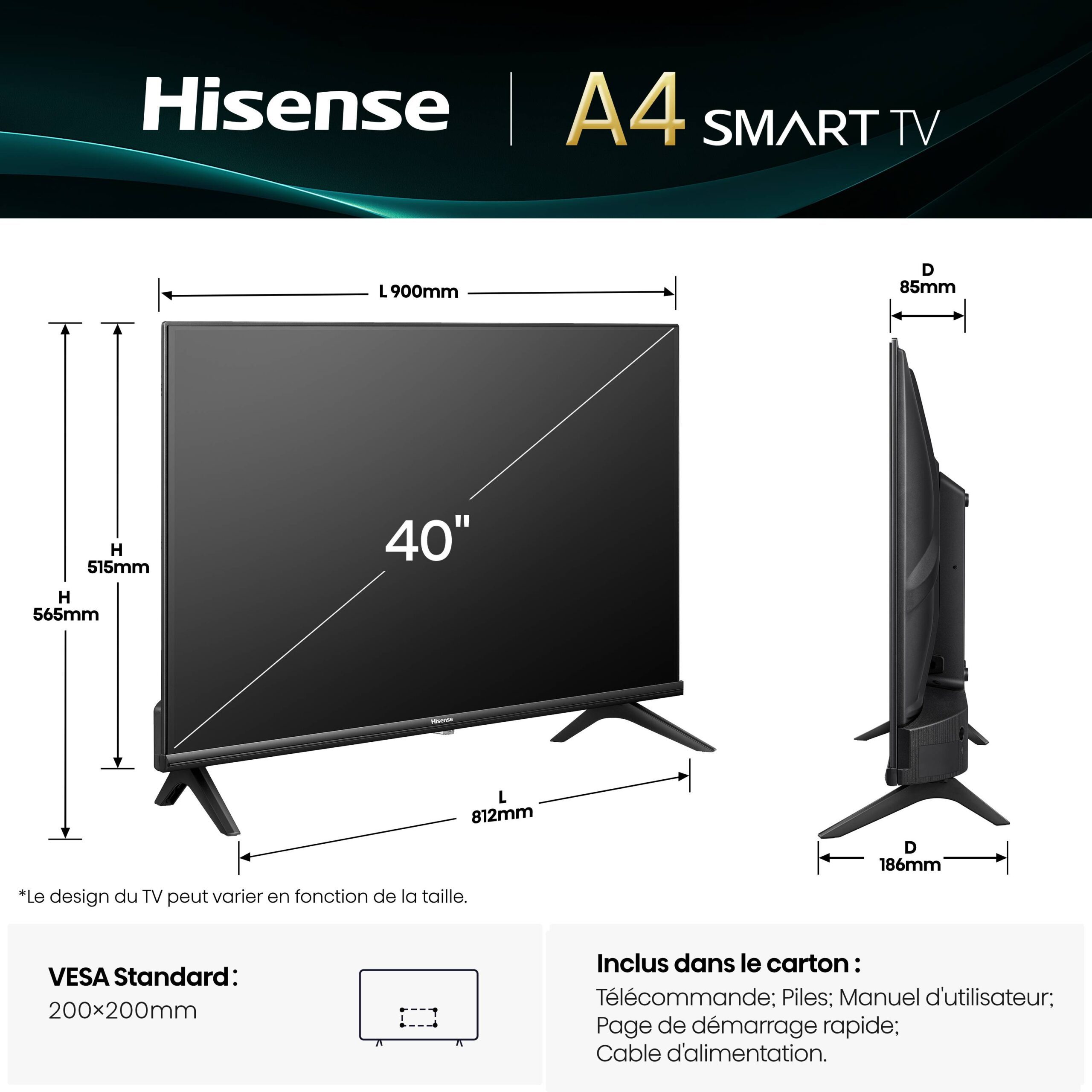 | Compatibilité fixation VESA (mm) | 200 x 200 mm |
