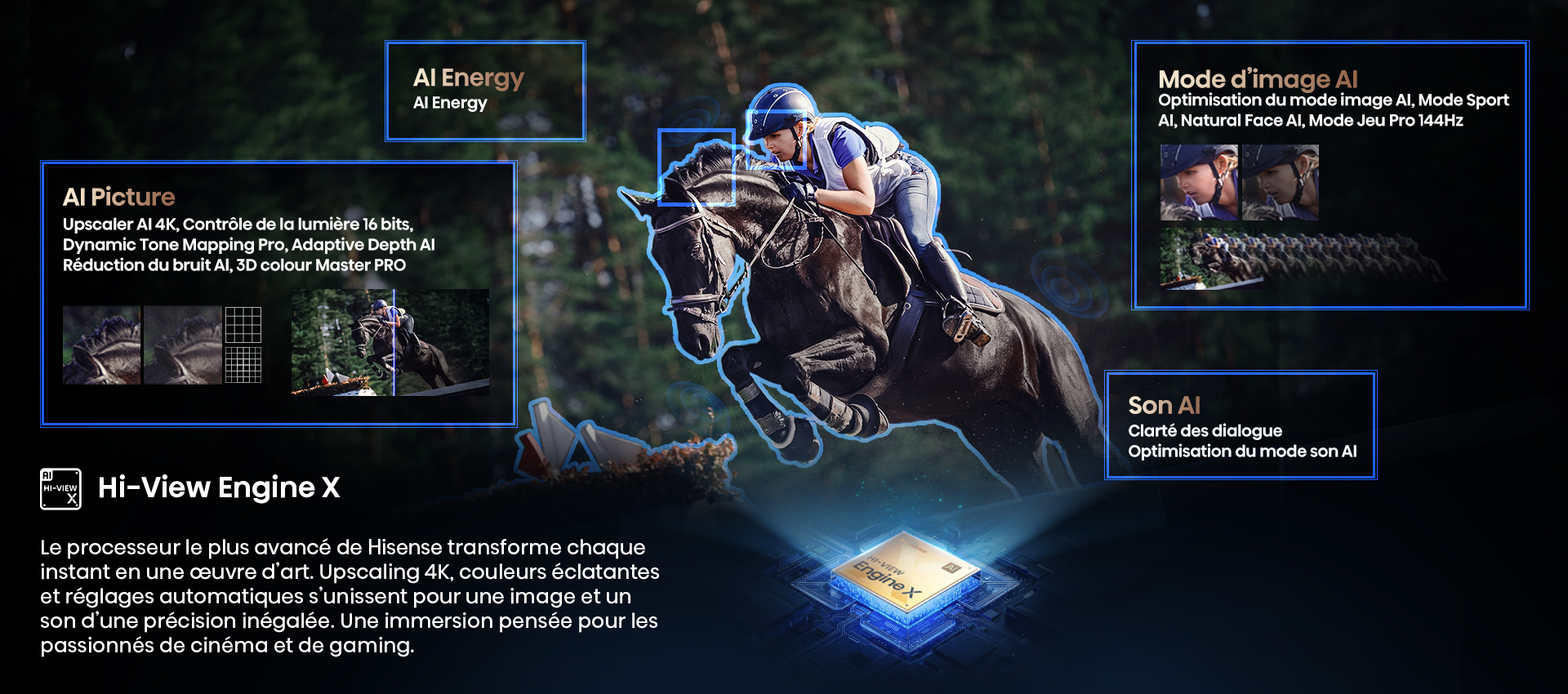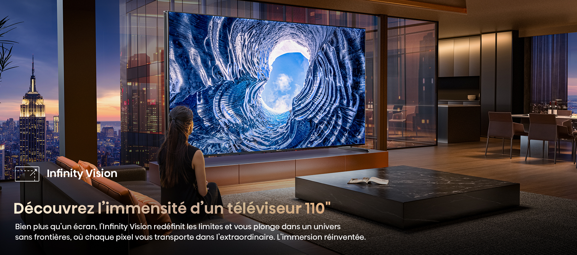 Avec le Téléviseur 110UXNQ, retrouvez une expérience cinématographique à la maison à couper le souffle. Profitez d’une image ultra réaliste et colorée grâce à la technologie QLED (Quantum Dot). En effet, cette technologie vous offre des couleurs intenses comme dans la réalité, vous transportant au cœur de l'image