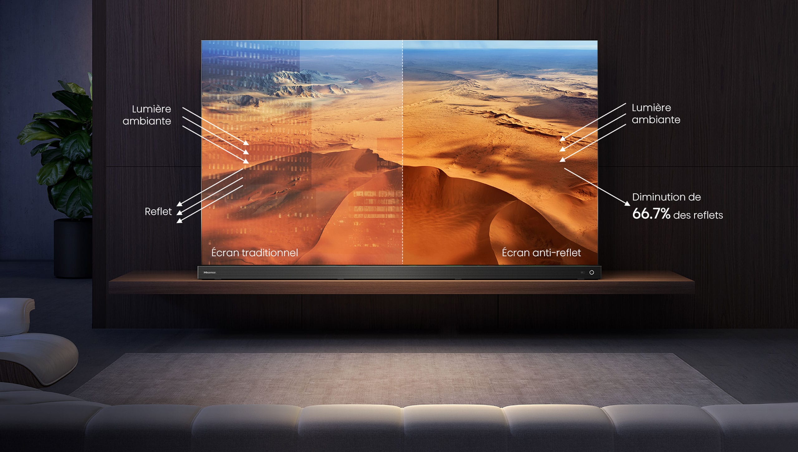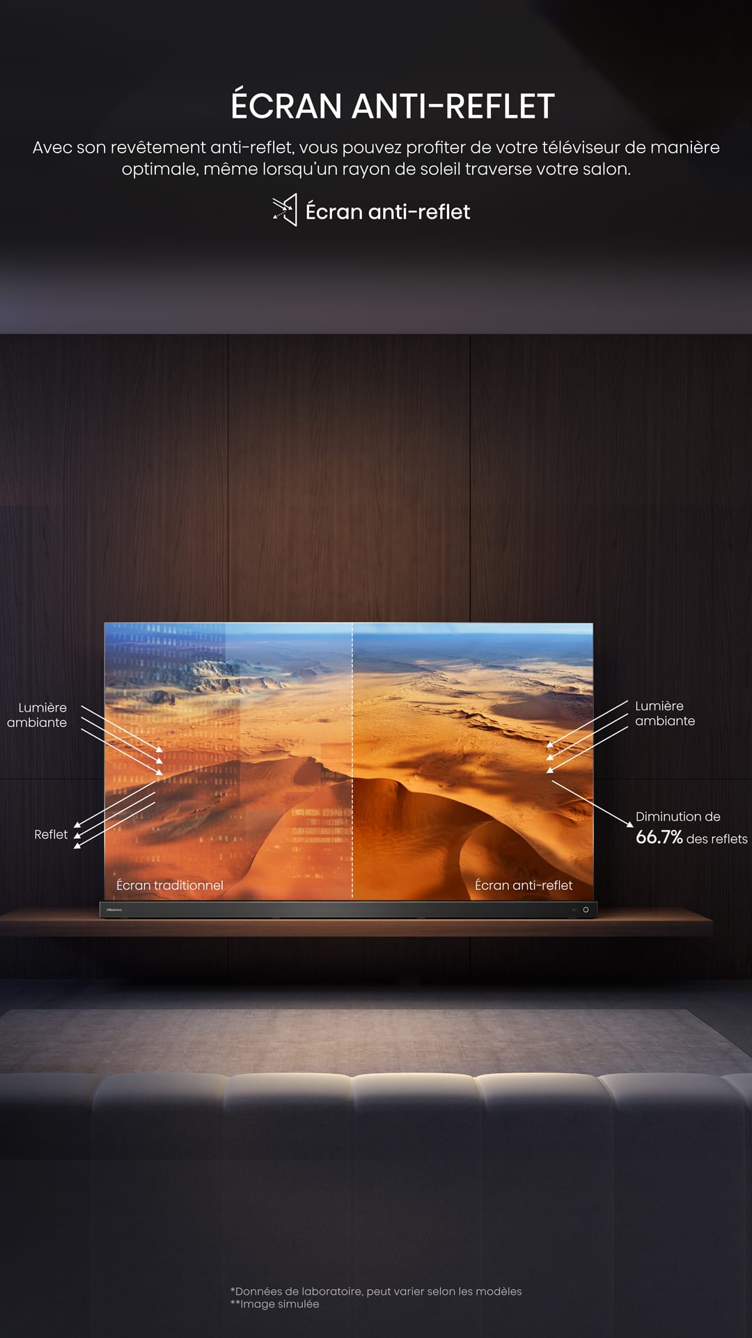 Avec son revêtement anti-reflet, vous pouvez profiter de votre téléviseur de manière optimale, même lorsqu’un rayon de soleil traverse votre salon.
