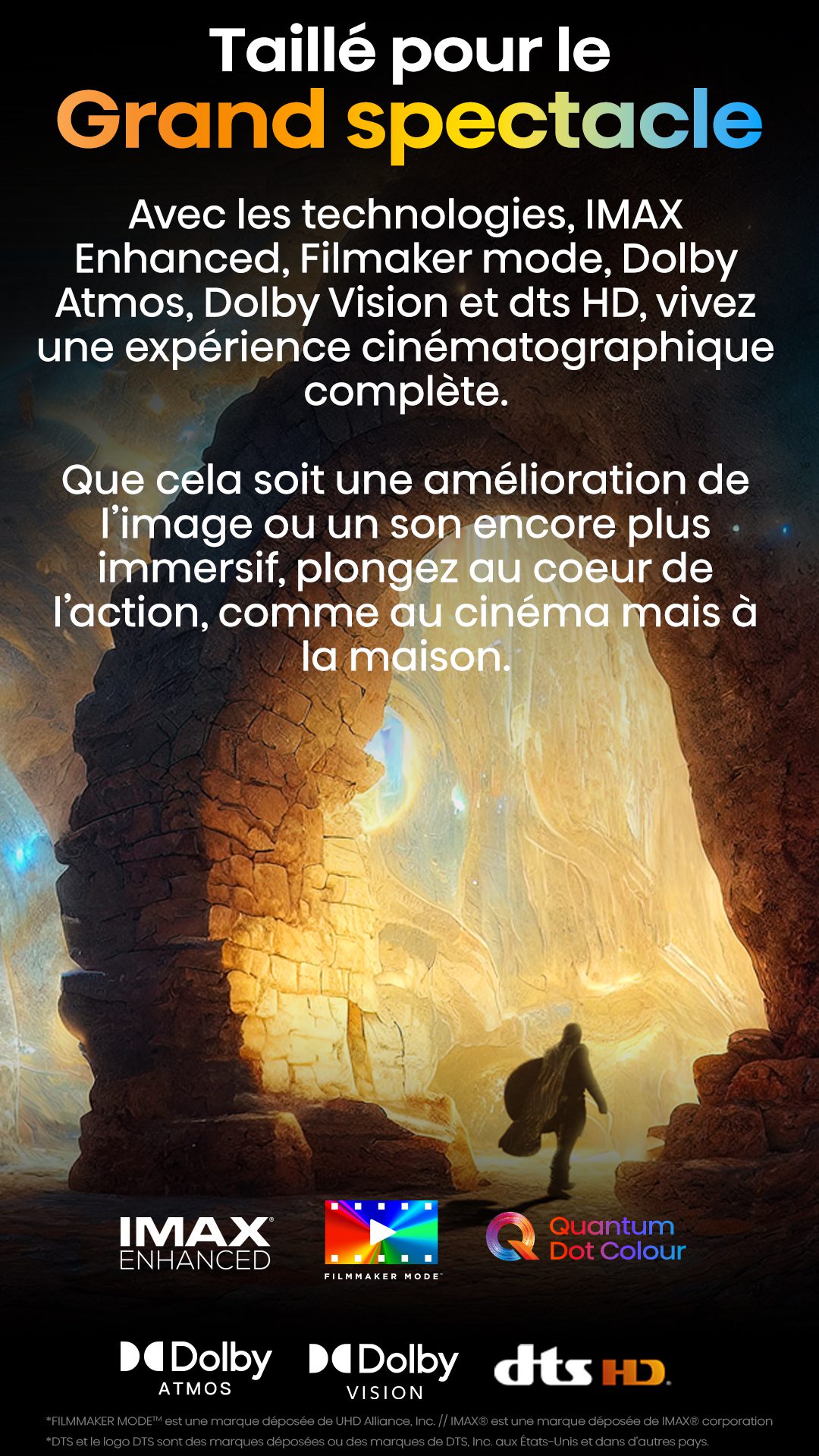 Dolby Atmos transcende l’expérience d’écoute en vous faisant vivre le son de l’intérieur, grâce à une spatialisation sonore qui révèle des détails d’une clarté et d’une profondeur incomparables.