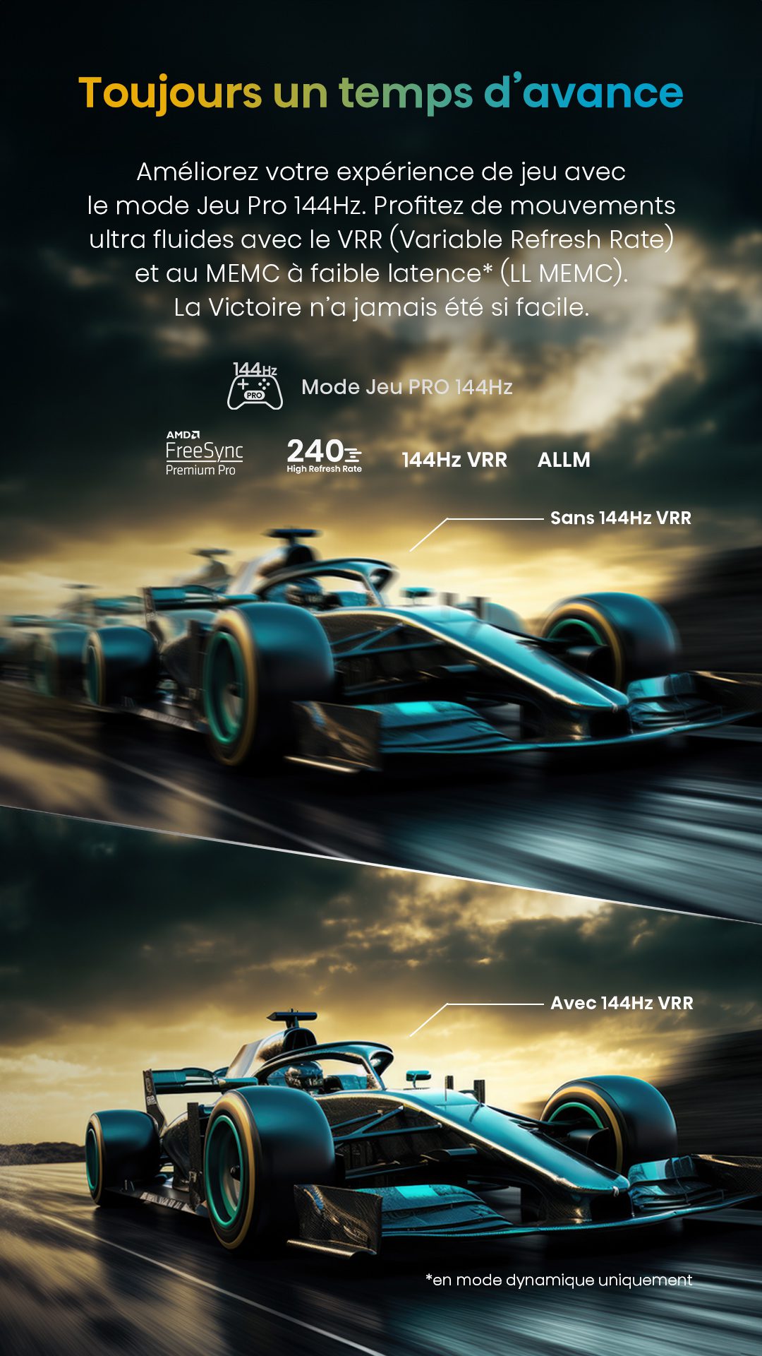 Fréquence dalle120 Hz (Native)/144 Hz (VRR) - 240 Hz (HSR)
