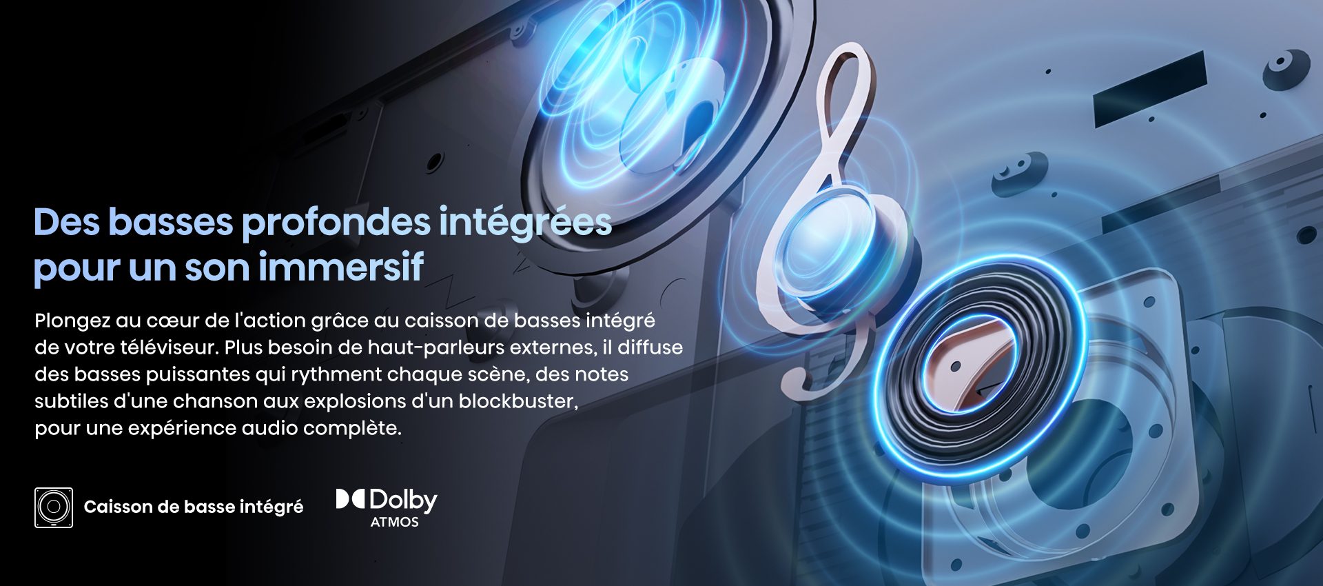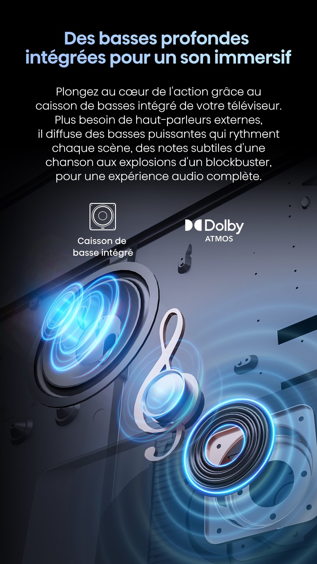 Dolby Atmos transcende l’expérience d’écoute en vous faisant vivre le son de l’intérieur, grâce à une spatialisation sonore qui révèle des détails d’une clarté et d’une profondeur incomparables.