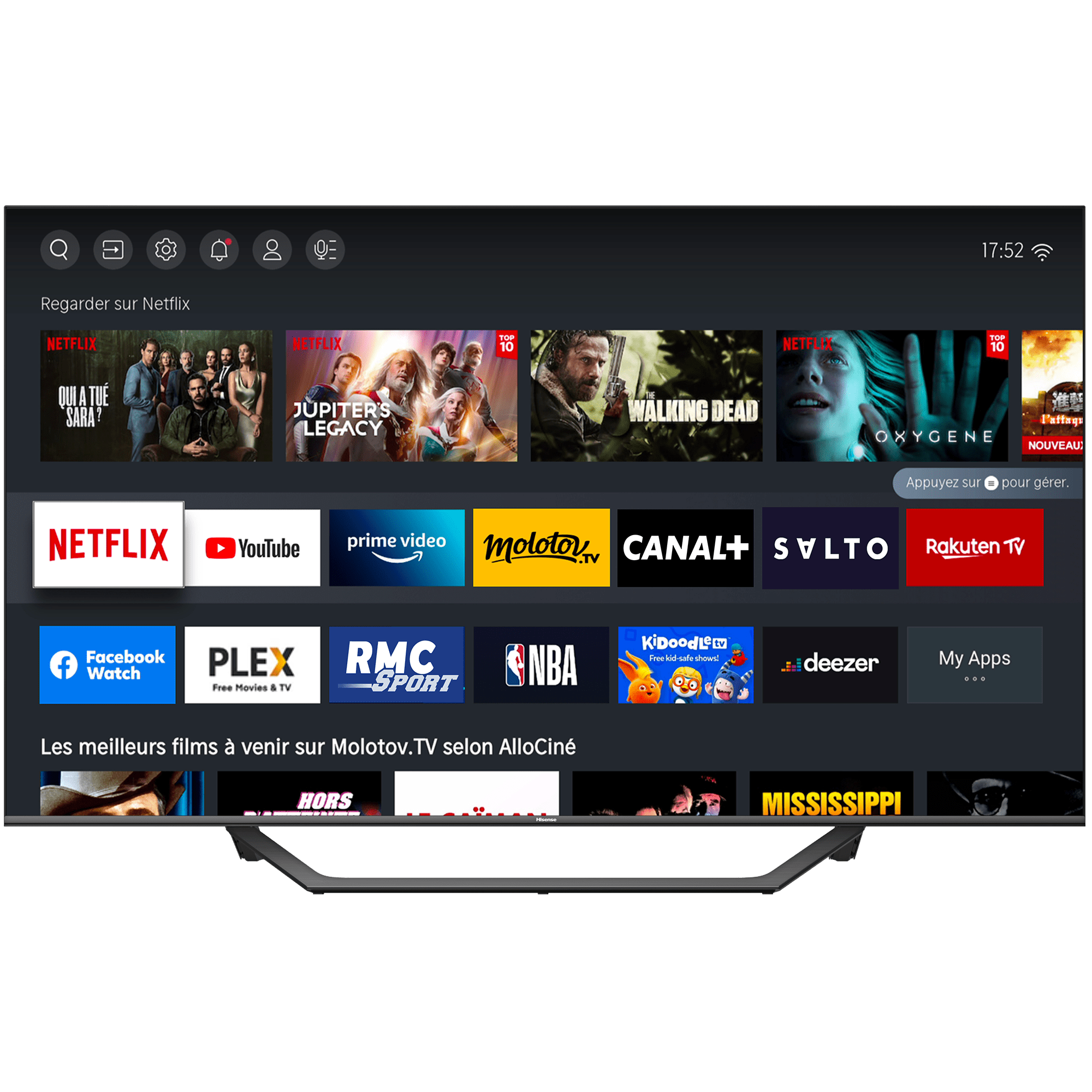 Accès direct sur la télécommandeNetflix, Youtube, Prime Video, Rakuten TV, Molotov