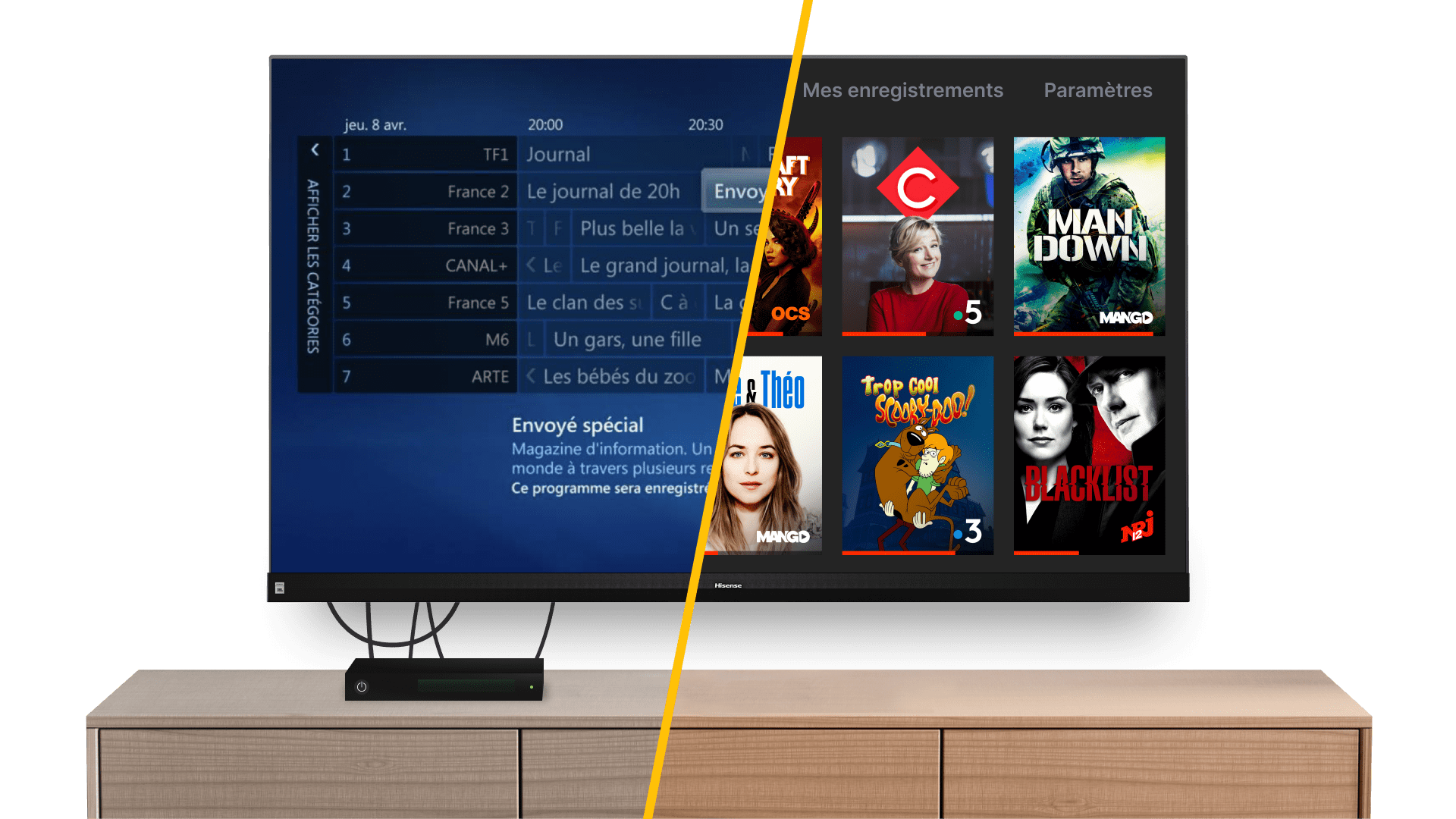 Expérience fluide : vous avez une seule télécommande pour tout contrôler : changer de chaîne, changer le volume sonore…