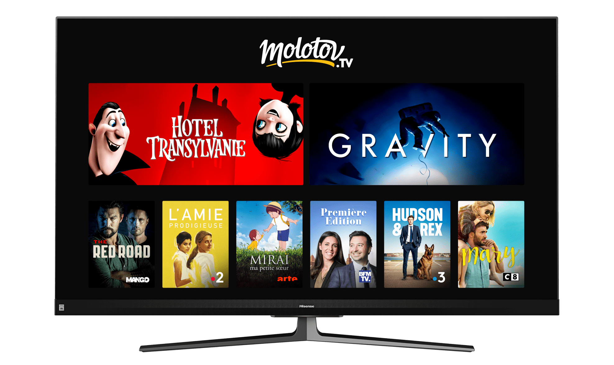 Avec Molotov sur vos Smart TV Hisense, accédez à tous vos programmes en direct, en replay ou à la demande directement et simplement et découvrez une nouvelle expérience télé sans décodeur !